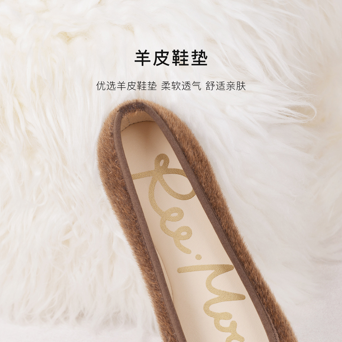 羊皮版复古玛丽珍鞋女方头秋冬季加绒保暖毛毛棉鞋平底晚晚单鞋女