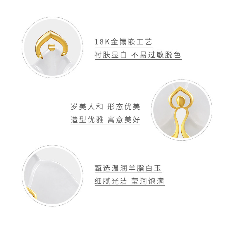 和合玉器和田玉羊脂白玉18k金镶玉真意系列雅芝挂件吊坠观音美人