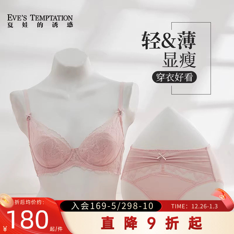夏娃的诱惑内衣内裤套装女夏季薄款法式蕾丝性感文胸聚拢防下垂