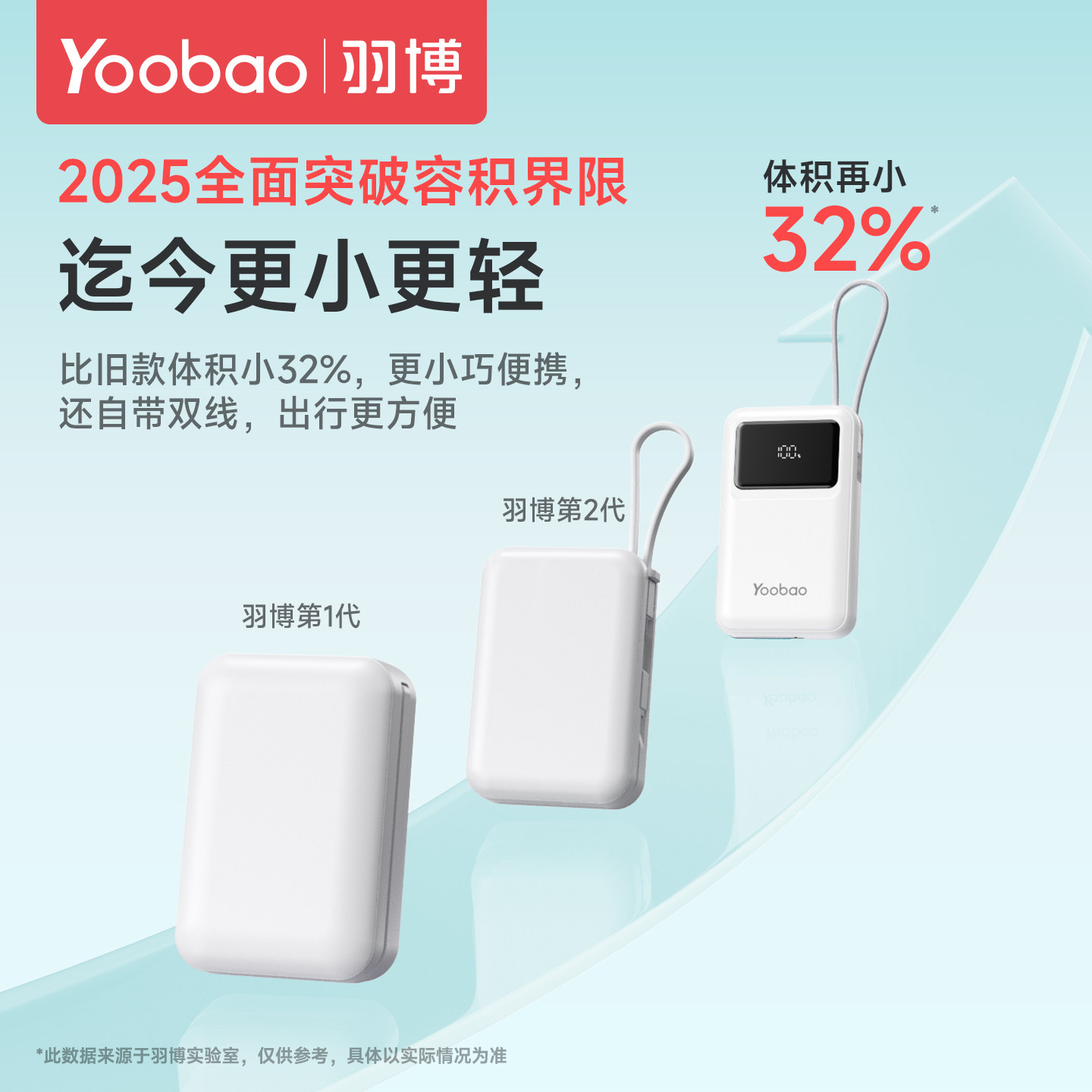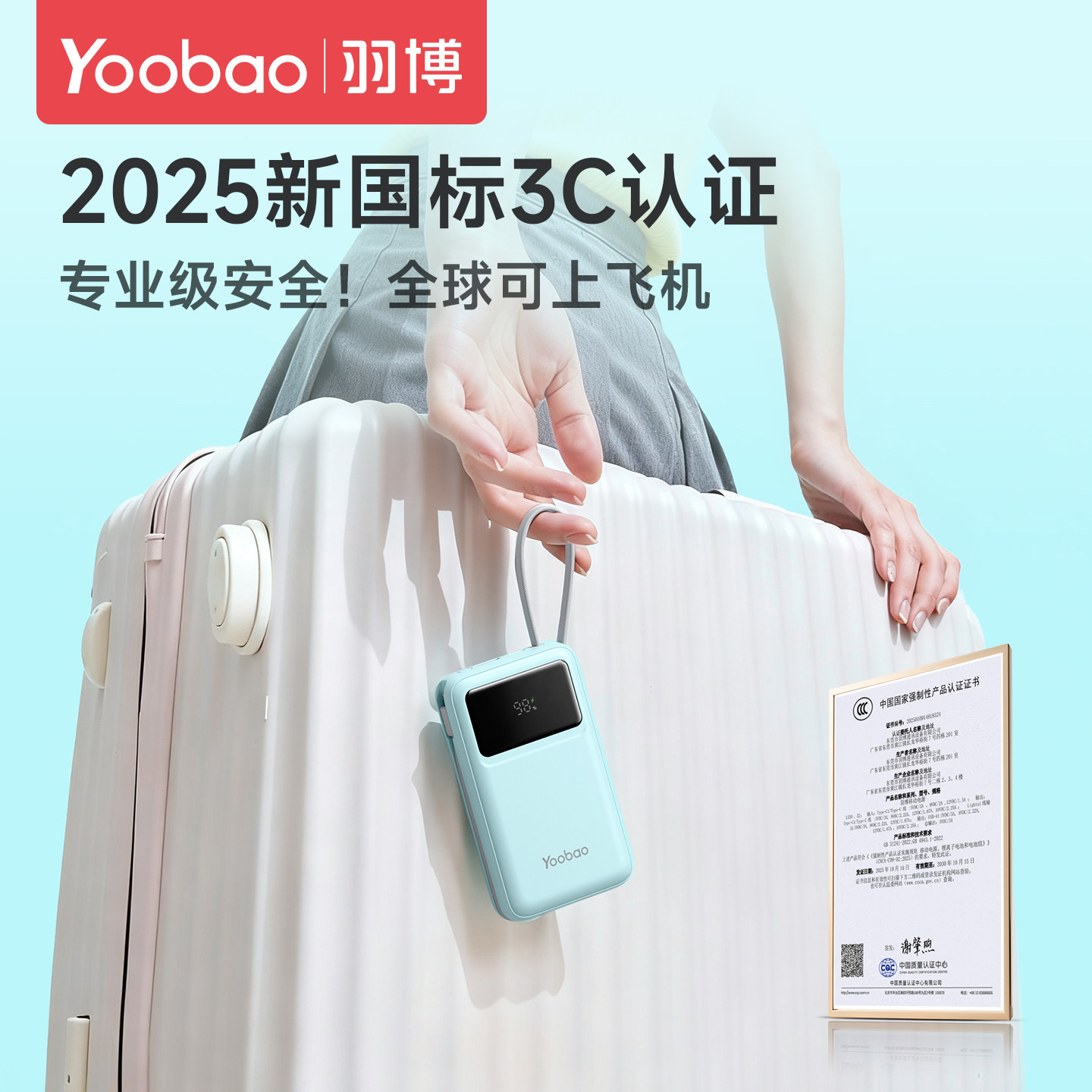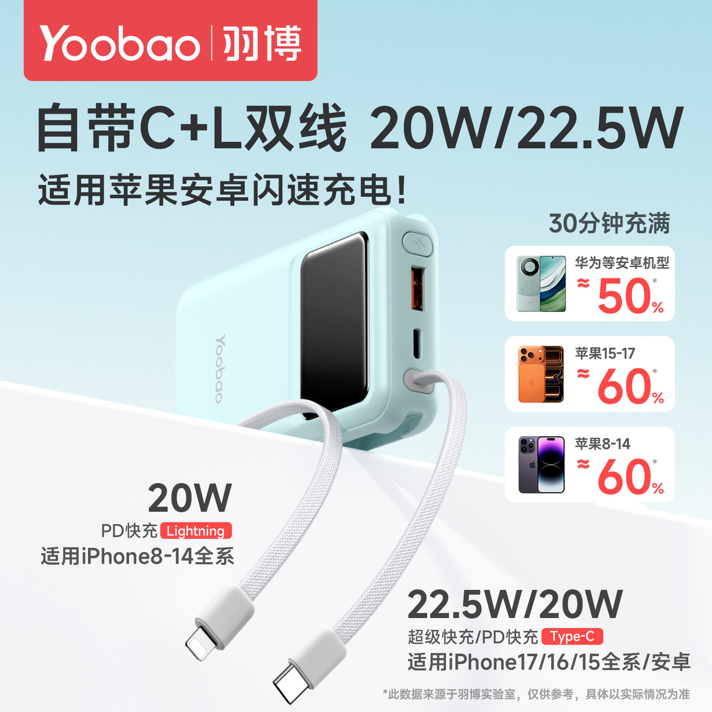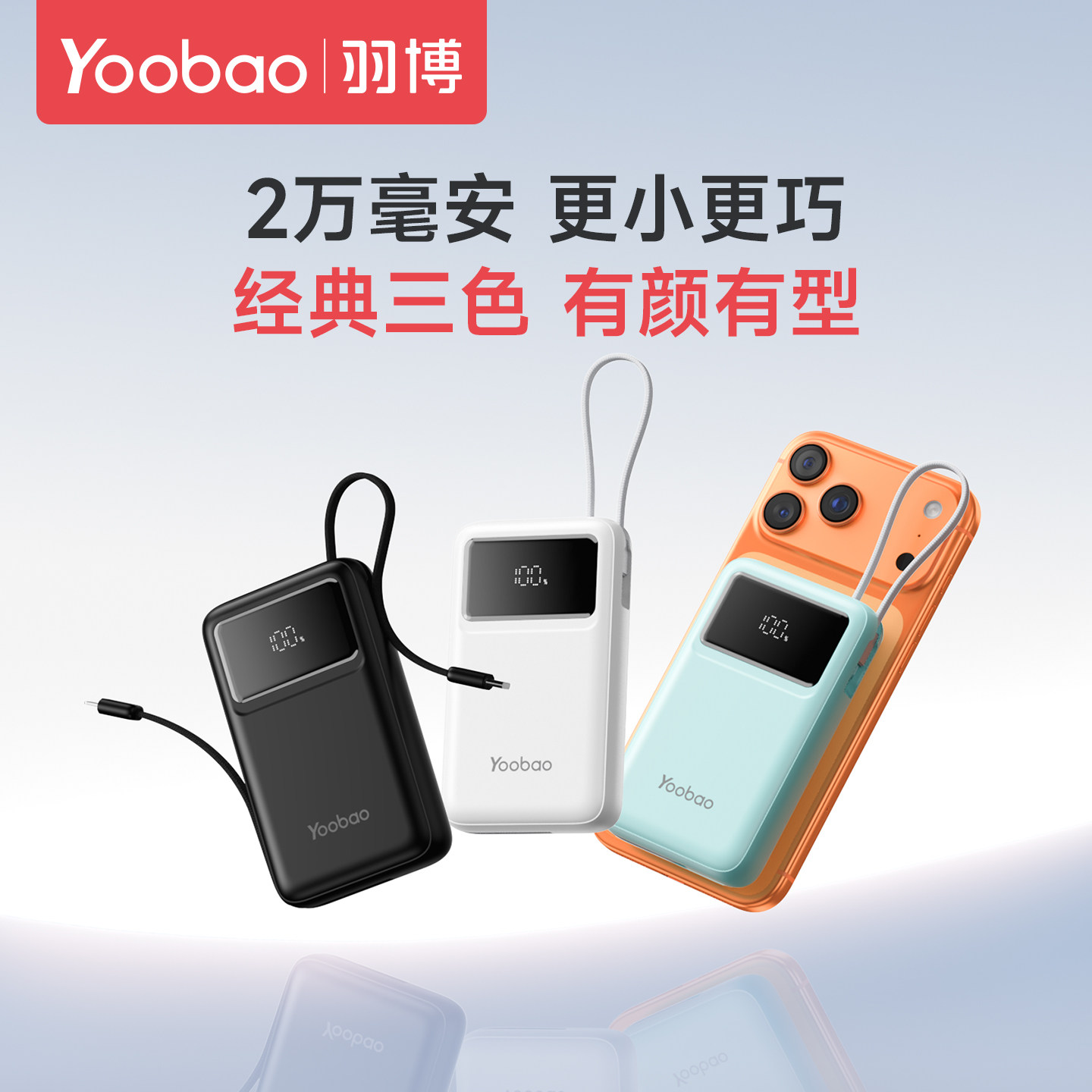 羽博充电宝官方旗舰店正品自带线充电宝2万20000毫安超大容量小巧便携快充适用苹果华为小米移动电源移动电源
