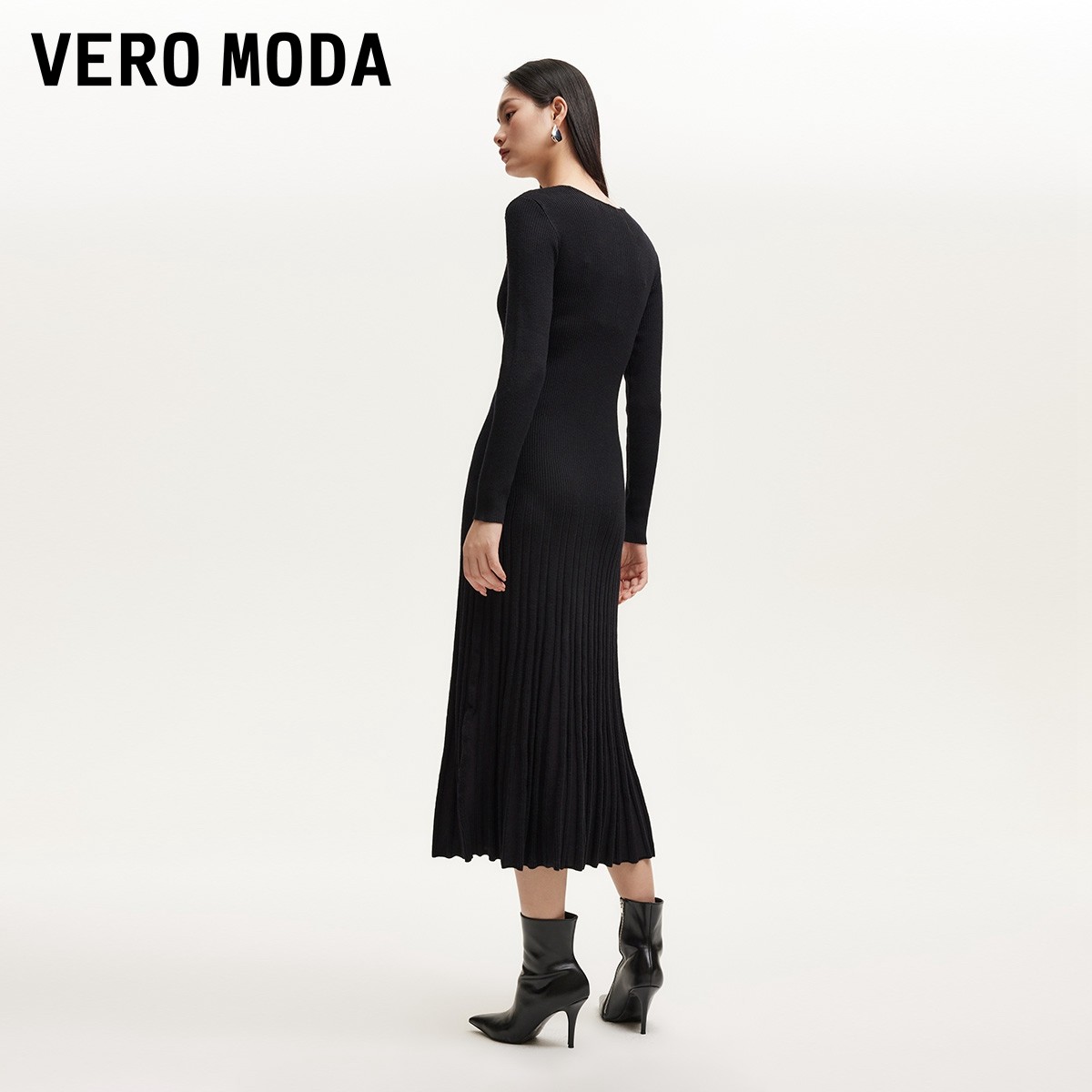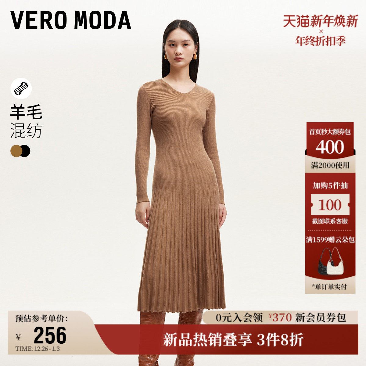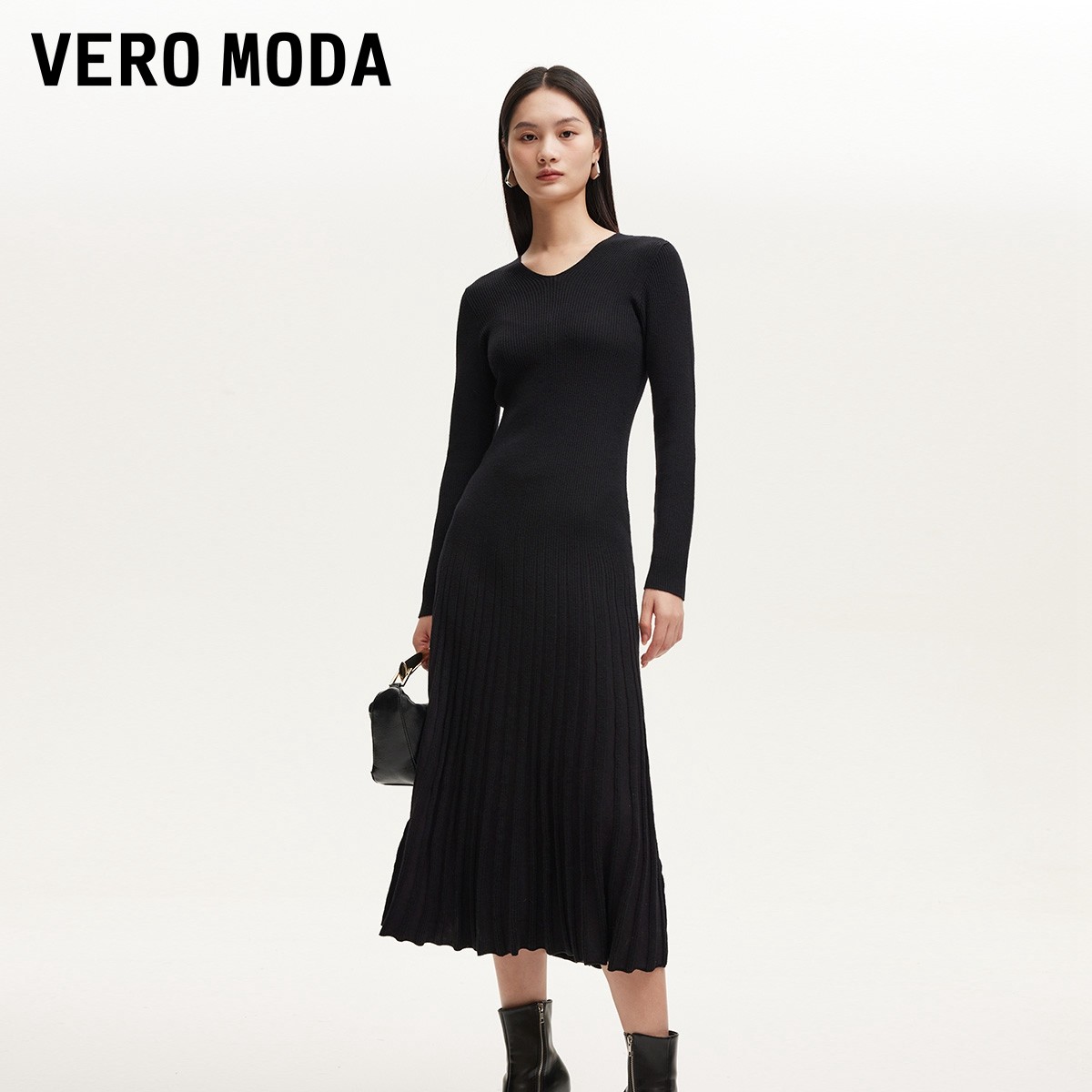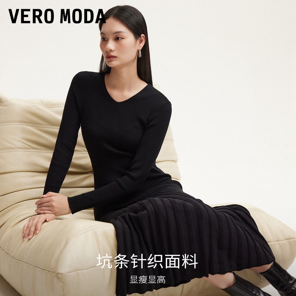 Vero Moda奥莱针织连衣裙秋冬新款V领修身显瘦A摆优雅气质流行