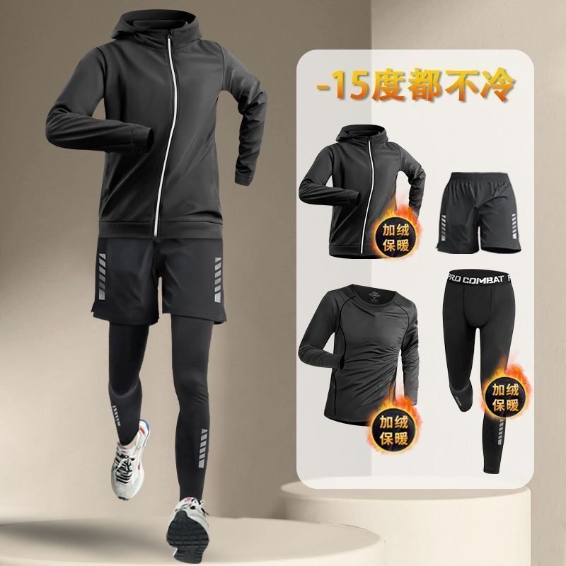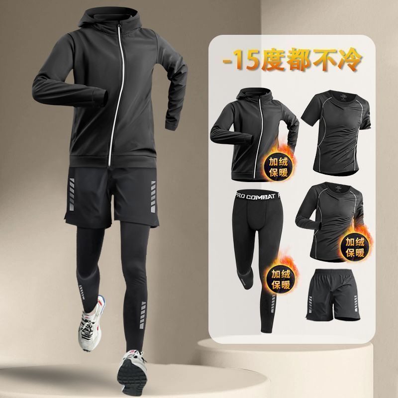 361跑步运动套装男秋冬加绒保暖健身衣服速干高弹紧身衣户外田径