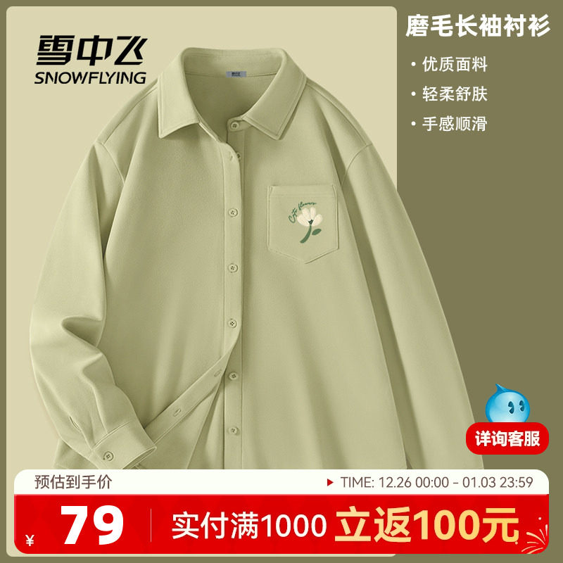 雪中飞抹茶绿衬衫外套女2025新款早秋流行穿搭女生磨绒长袖衬衣PC