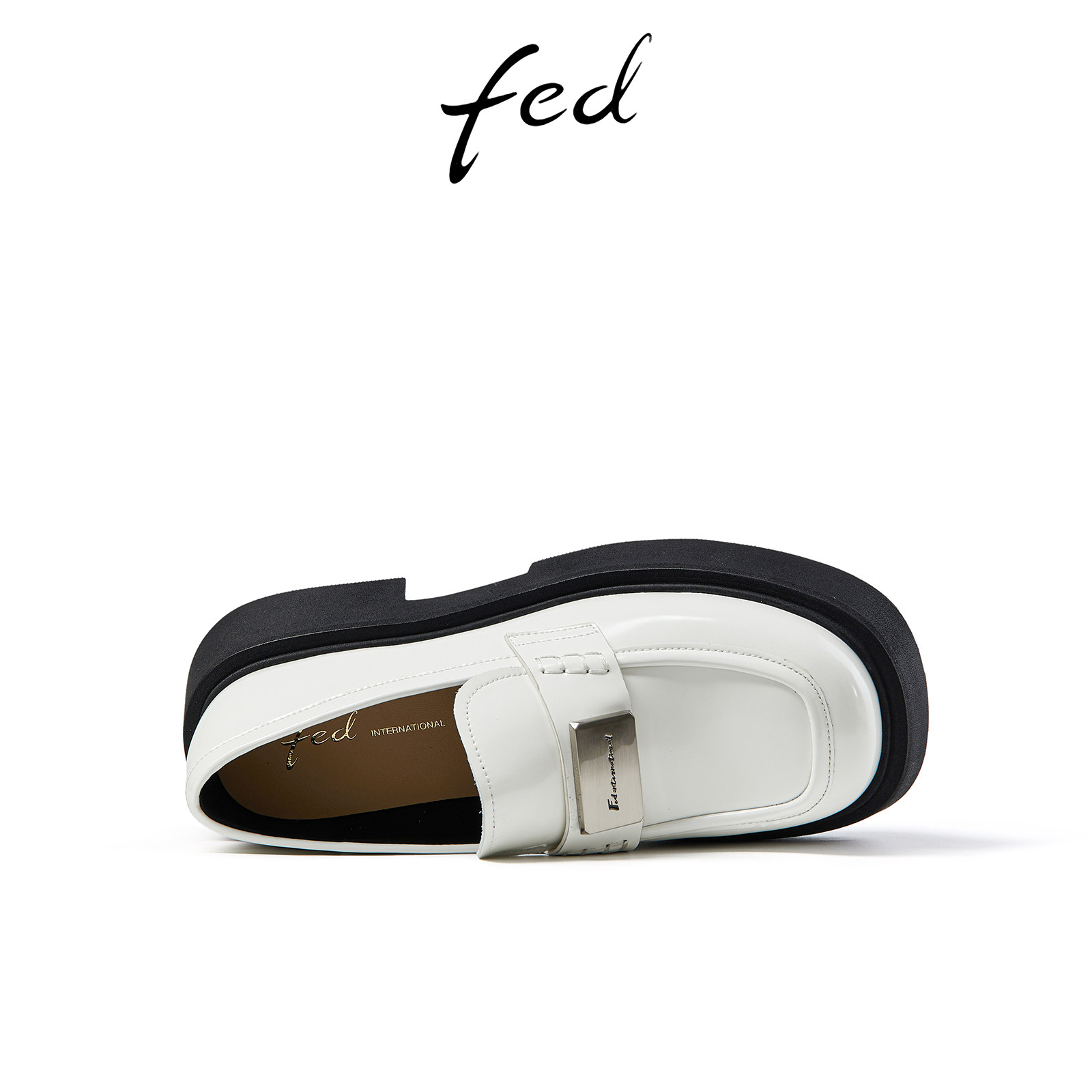 fed圆头小皮鞋秋季新款女鞋厚底粗跟一脚蹬乐福鞋女R0821-YAC761