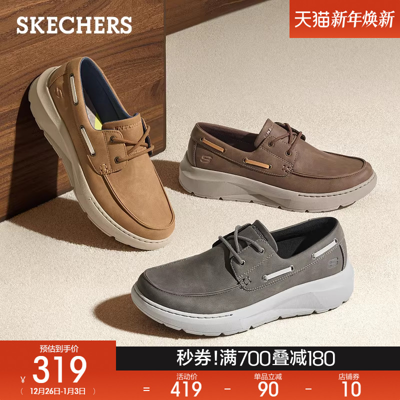 斯凯奇秋冬新款男子舒适休闲皮鞋商务鞋通勤鞋德比鞋软底上班板鞋