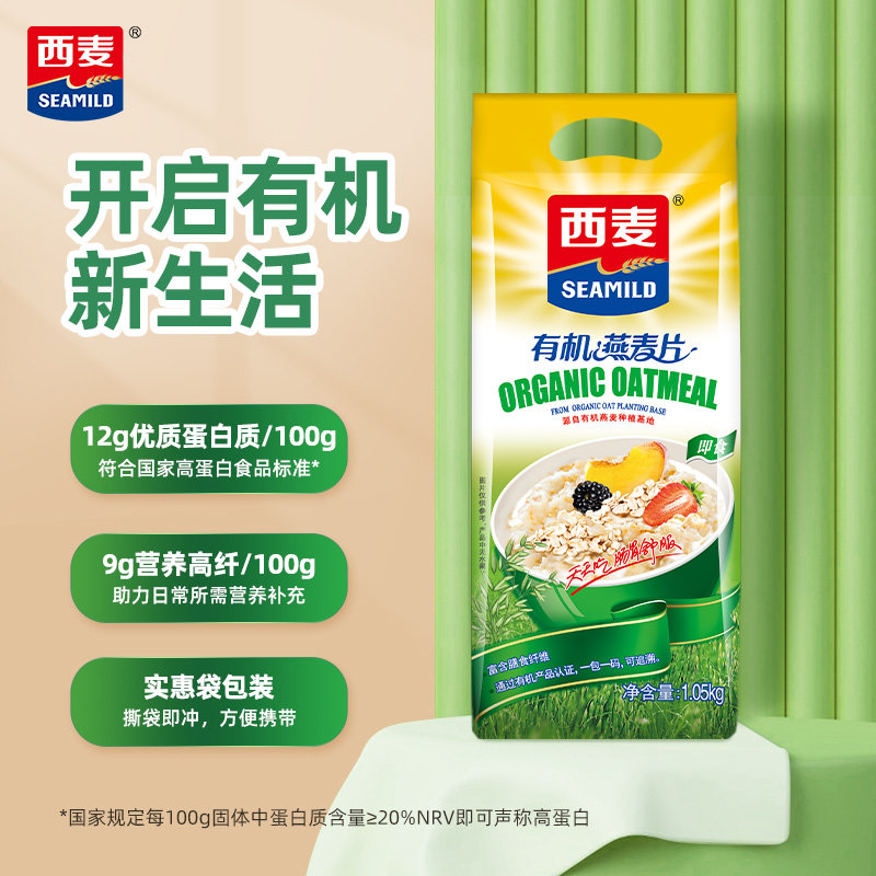 西麦有机纯燕麦片1050g袋装即食营养早餐代餐饱腹粗粮谷物无添加