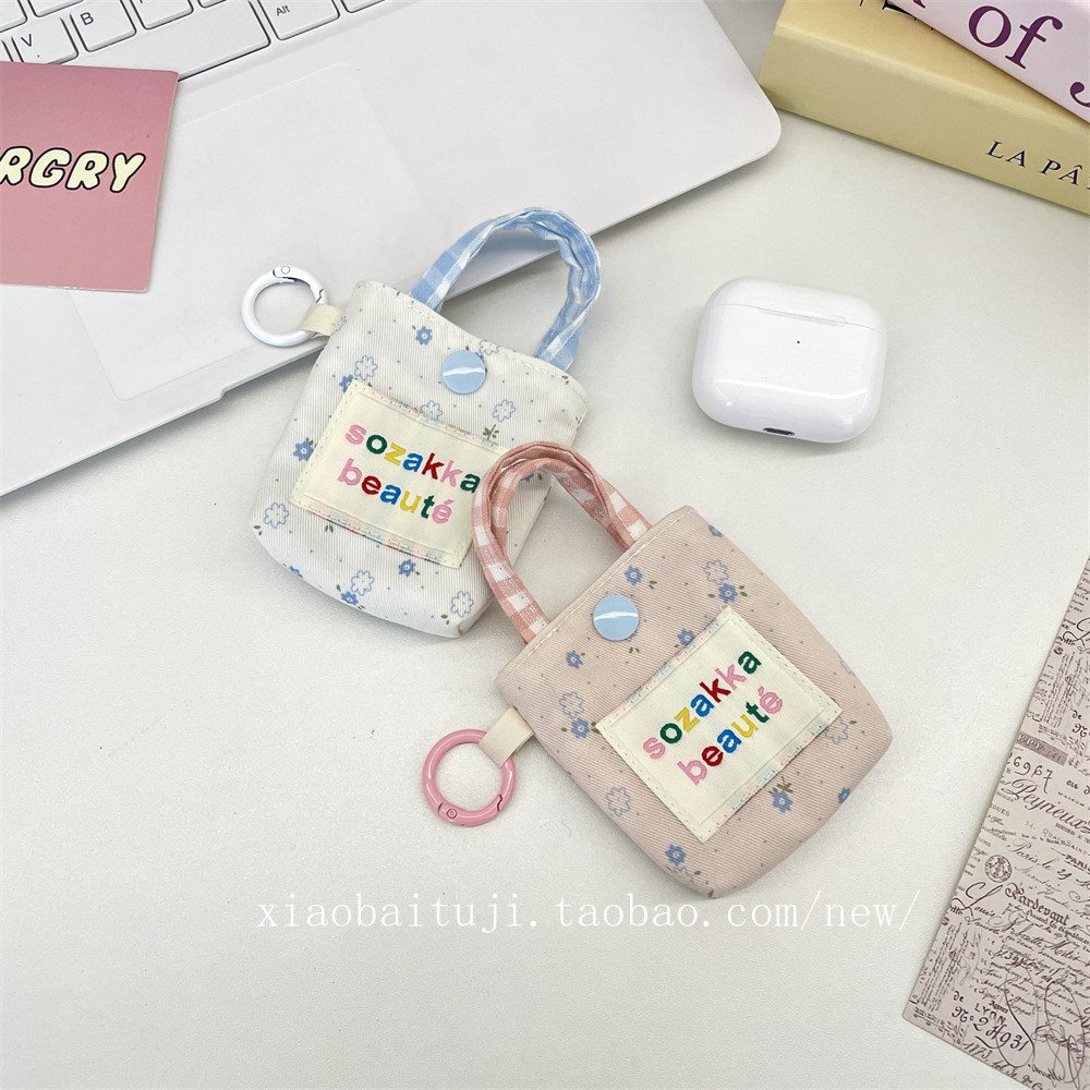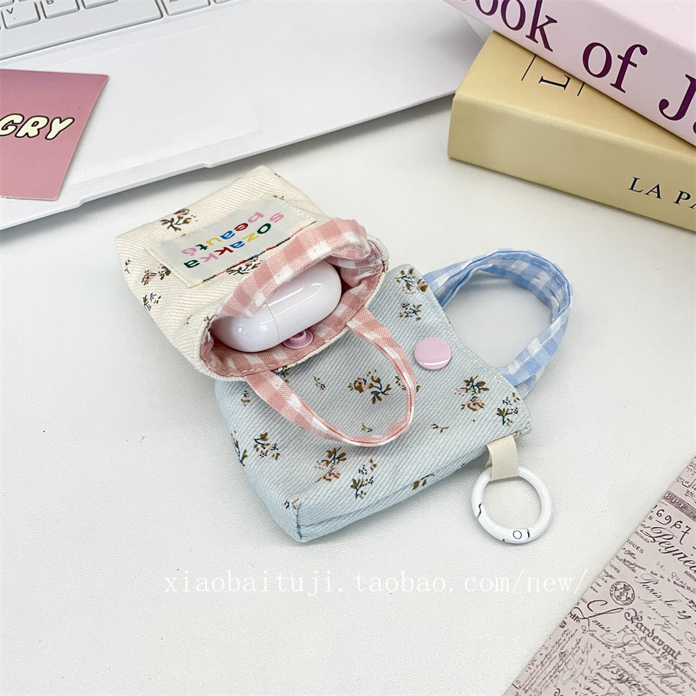 小白兔几 碎花拼接耳机包蓝牙耳机软壳零钱包迷你口红收纳包耳机套