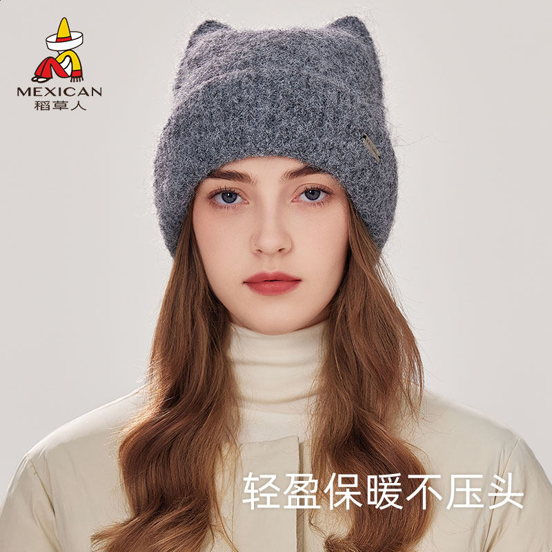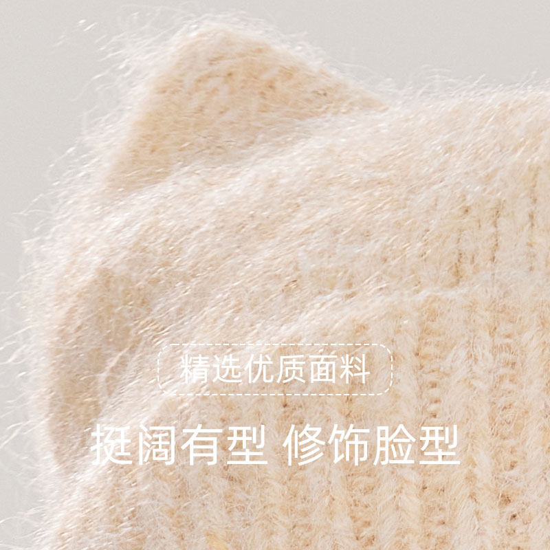 稻草人猫耳朵针织帽子女士秋冬季保暖护耳帽可爱百搭显脸小毛线帽
