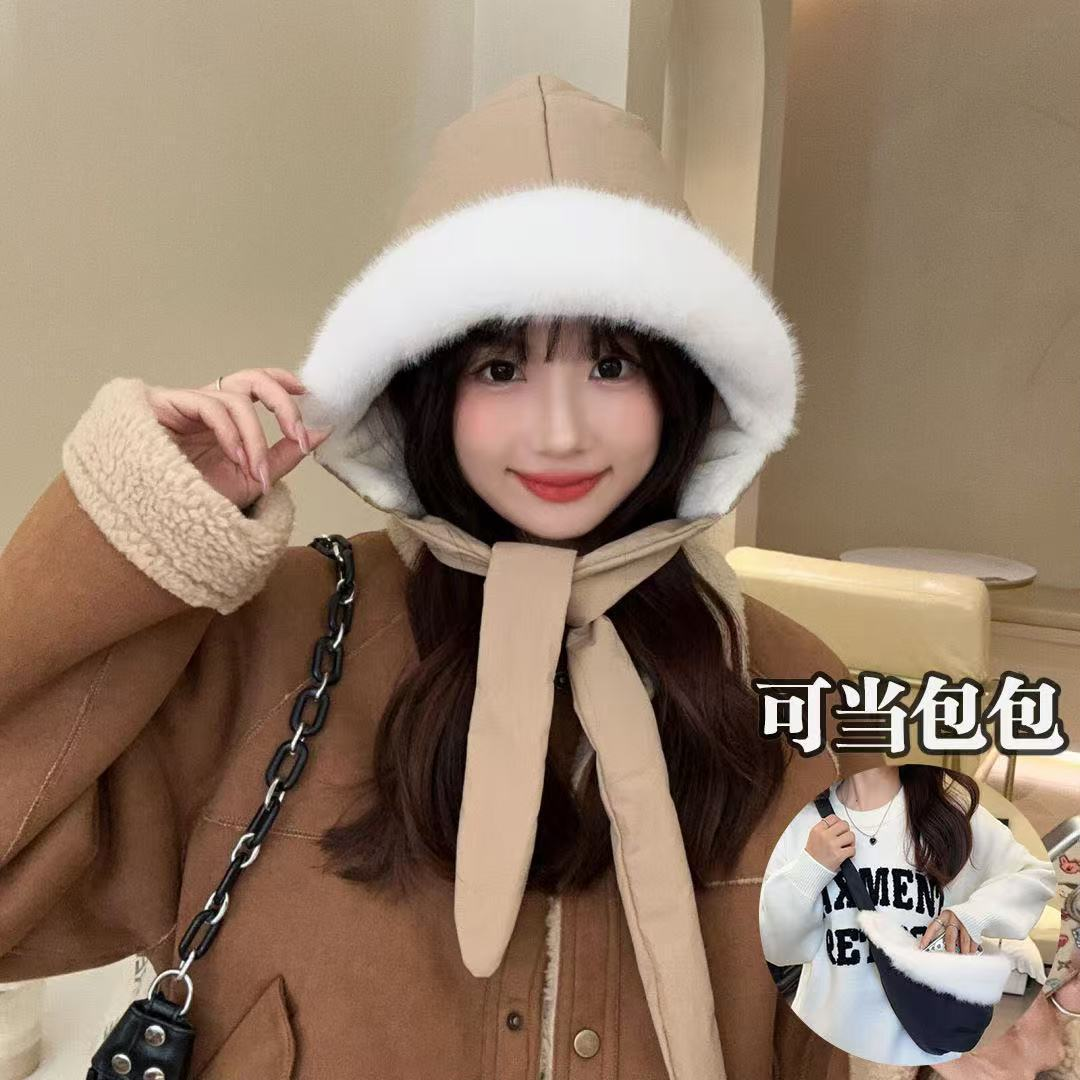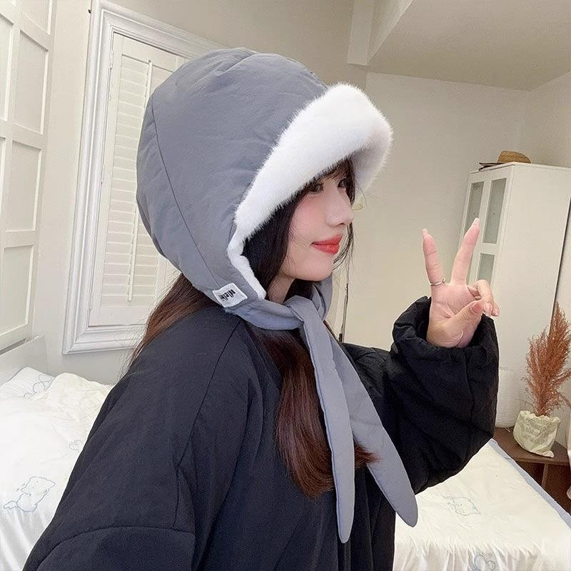 帽子女士冬季加绒雷锋帽新款保暖防寒帽围一体护耳加厚骑车面罩风