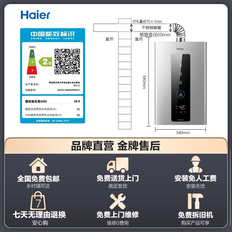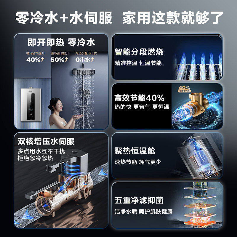 政府补贴海尔燃气热水器家用天然气零冷水增压水伺服恒温16升HD7