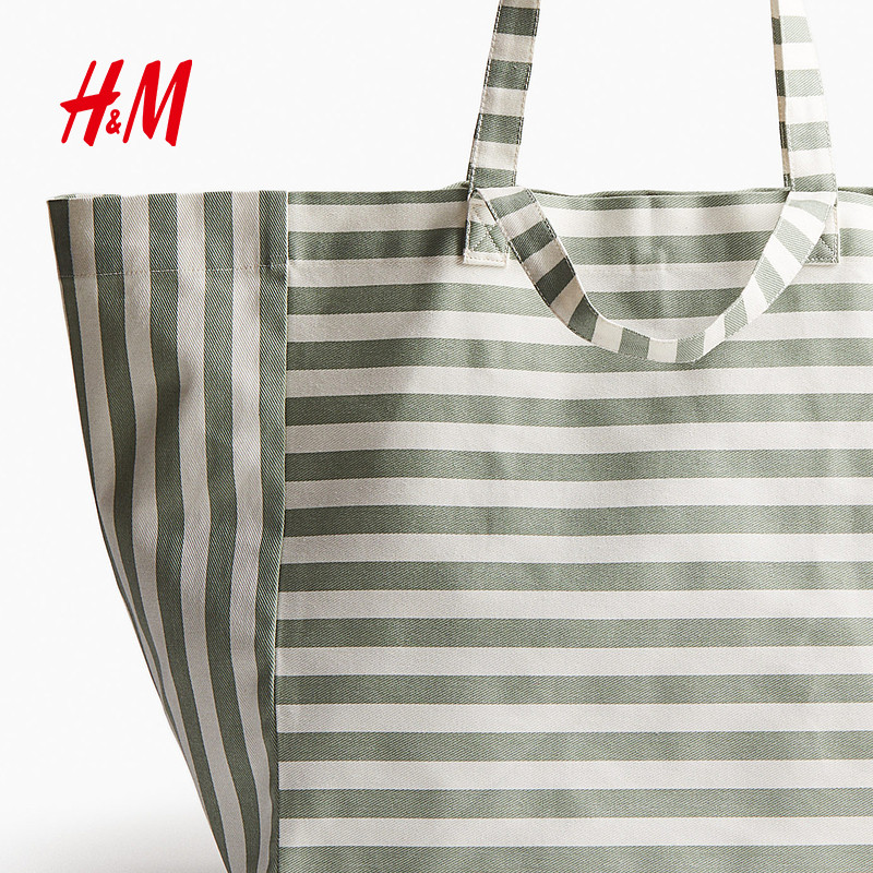 HM2025年冬季新款流行棉质帆布简约沙滩包1152378