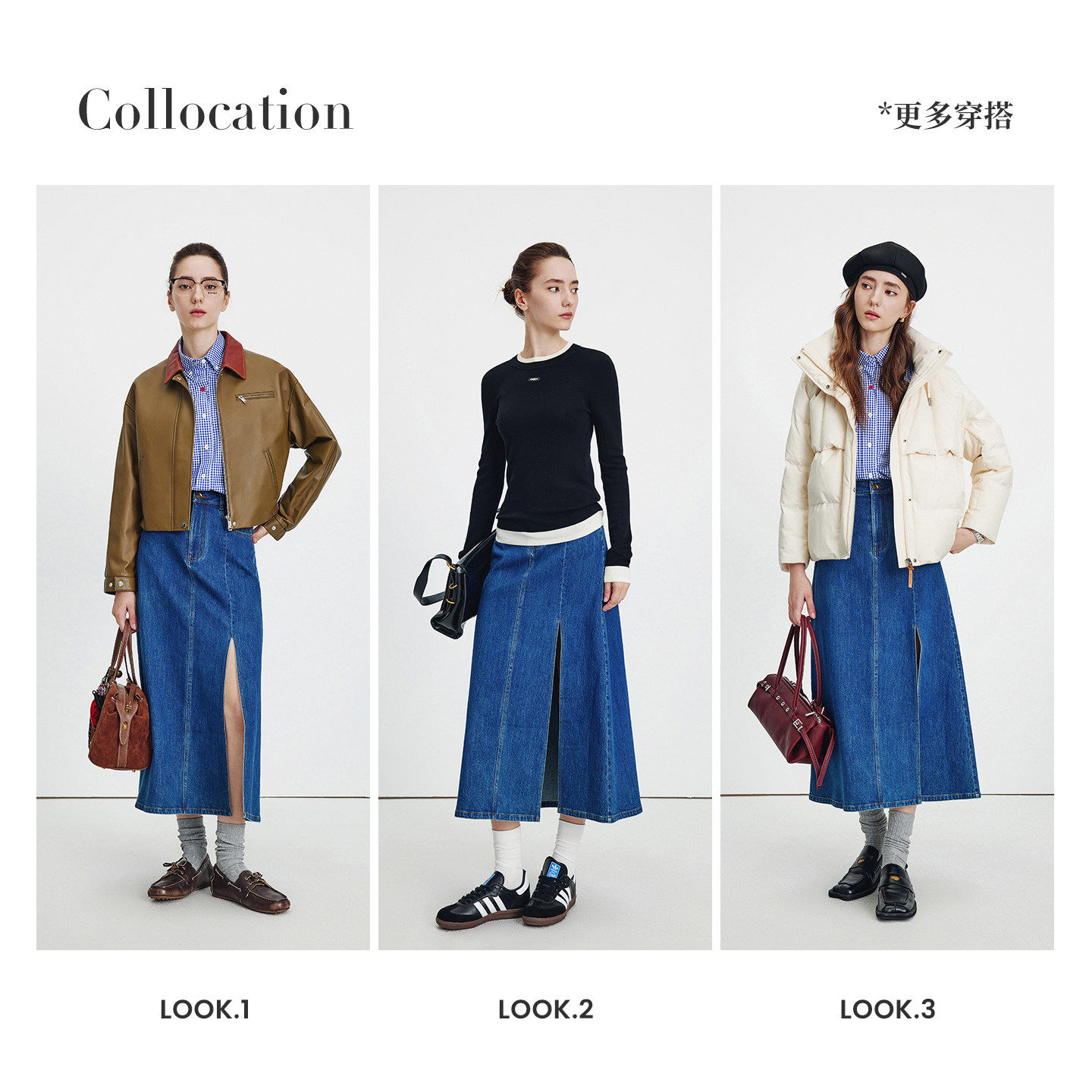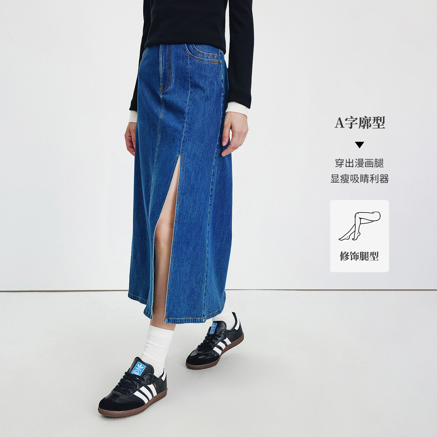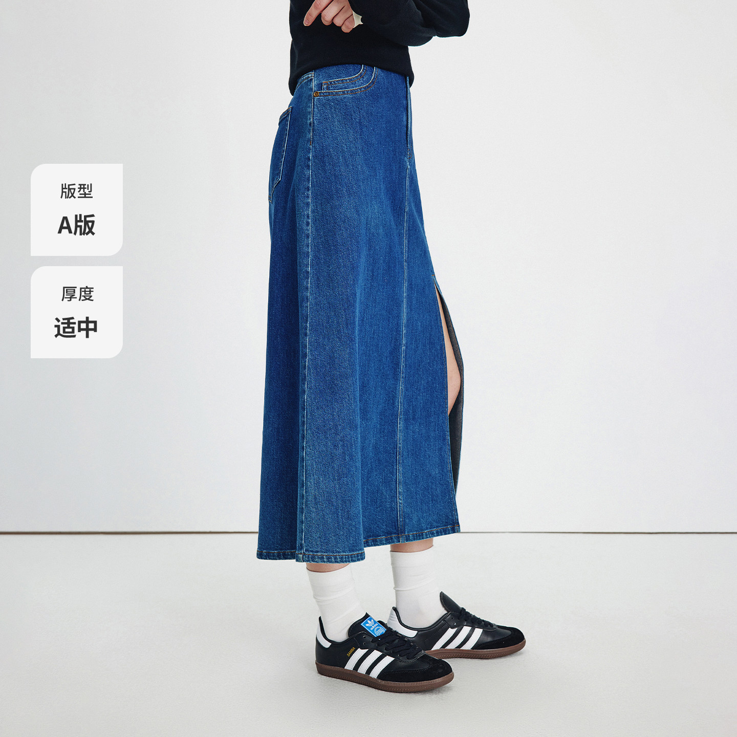 Navigare意大利小帆船中长款半身裙女2025秋季新款通勤牛仔A字裙