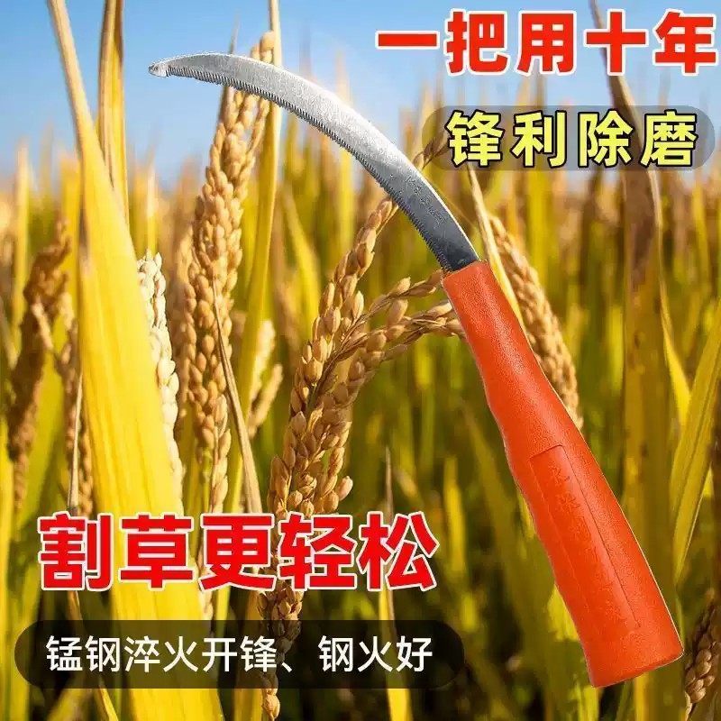 不锈钢镰刀割草刀农用锯齿镰刀加密细齿小禾镰韭菜刀割禾草廉刀