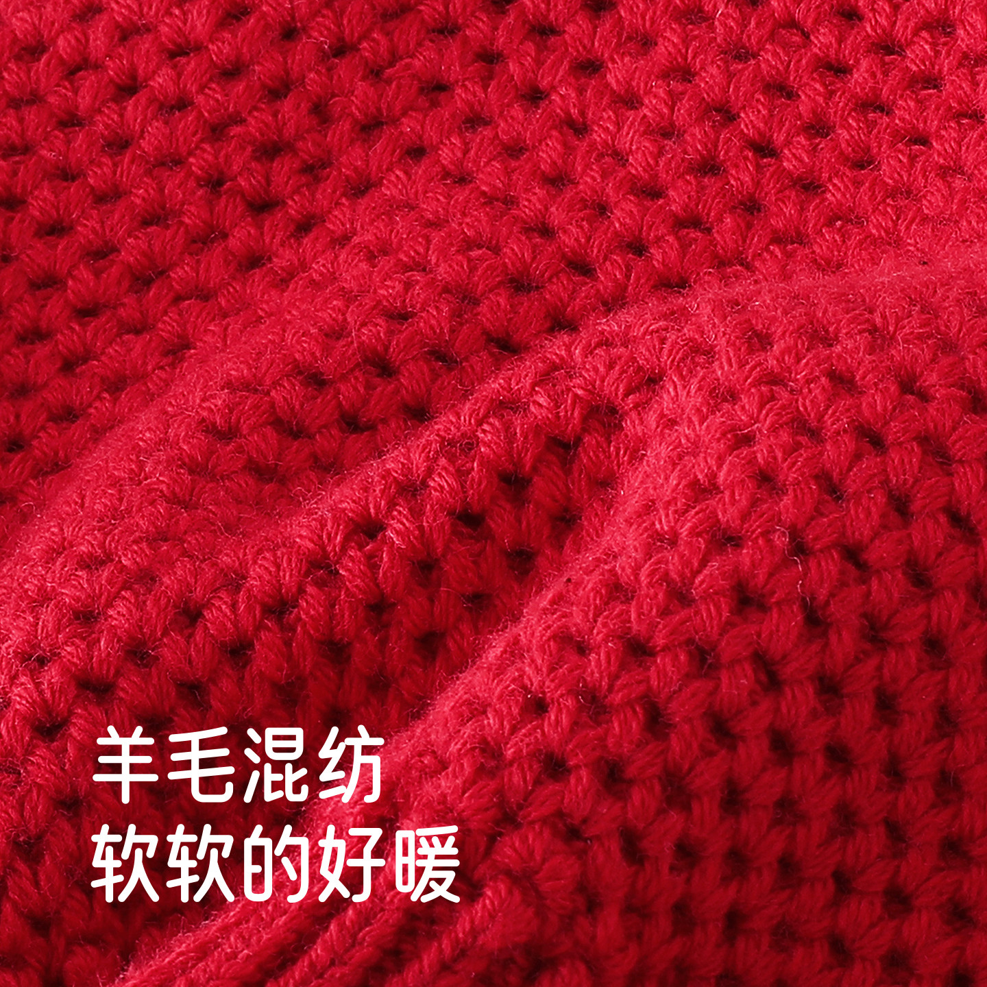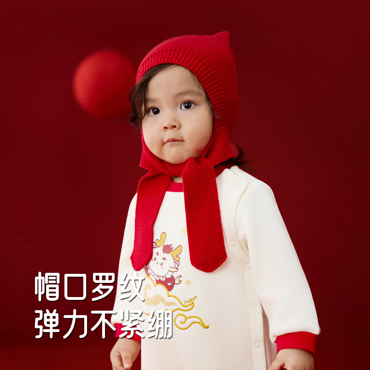 英氏儿童毛线帽围脖针织帽带围巾护耳宝宝帽子保暖喜庆秋冬新款
