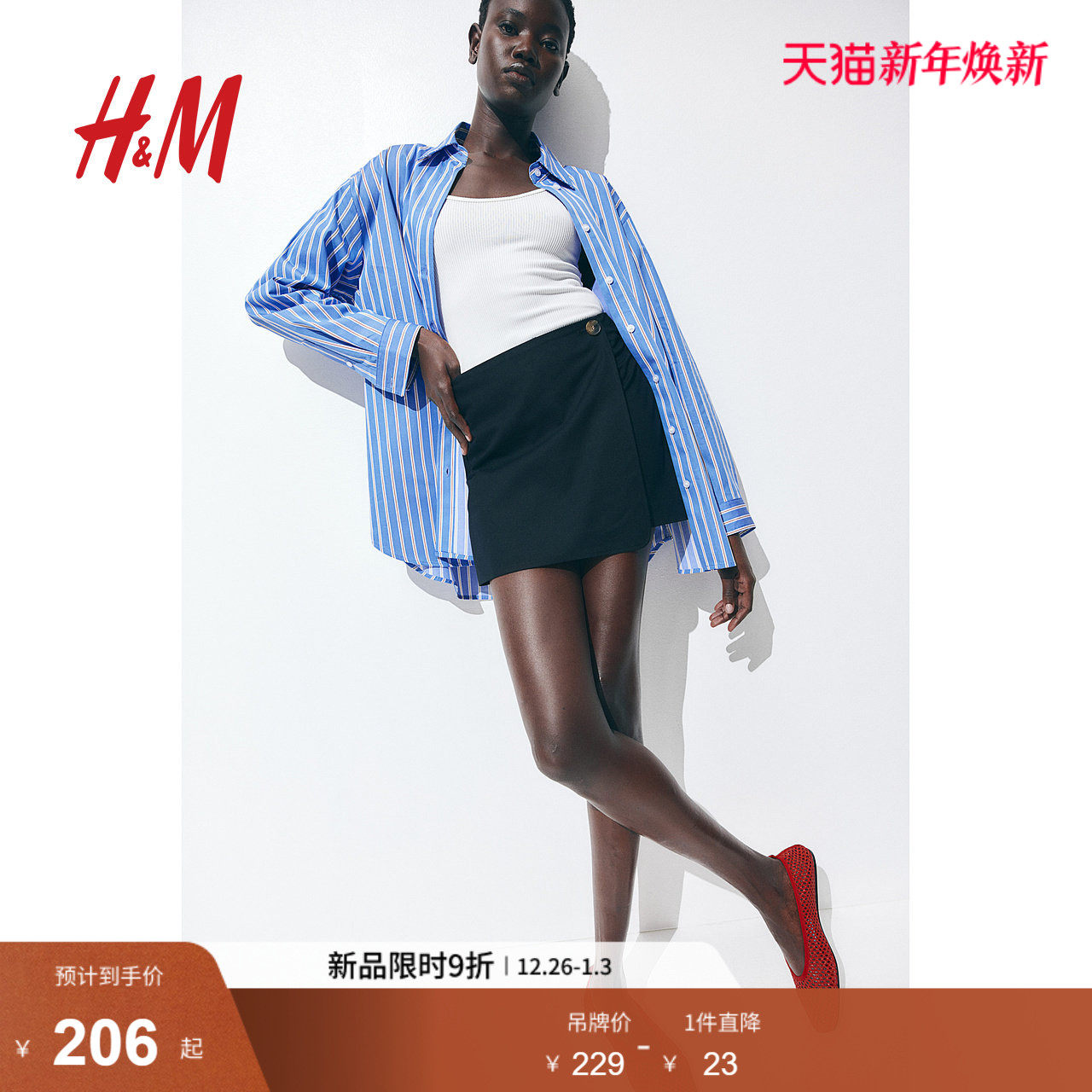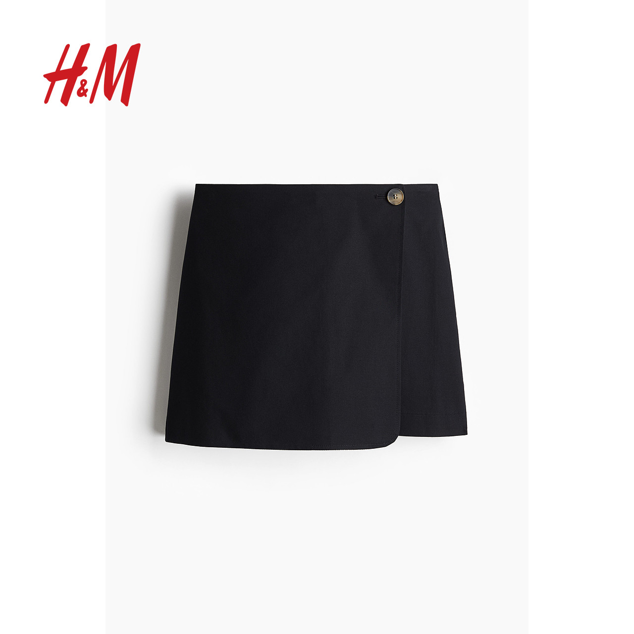 HM女士裙裤2025年冬季新款简约设计感牛仔斜纹布短裙裤1272552