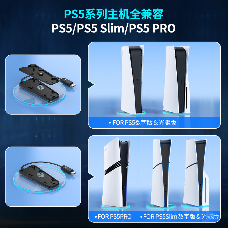 良值(IINE)适用PS5/Slim/PRO主机支架 PS5数字/光驱版通用直立支架 轻薄版收纳架 RGB灯光电竞桌搭 PS配件