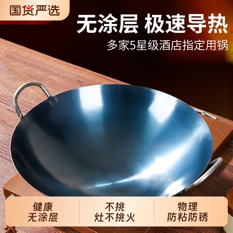 铁锅官方旗舰炒菜锅老式炒锅铁锅家用不粘锅无涂层燃气灶适用