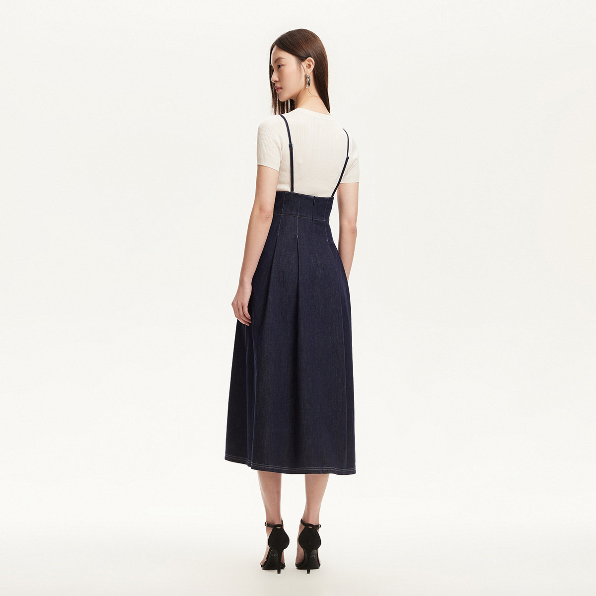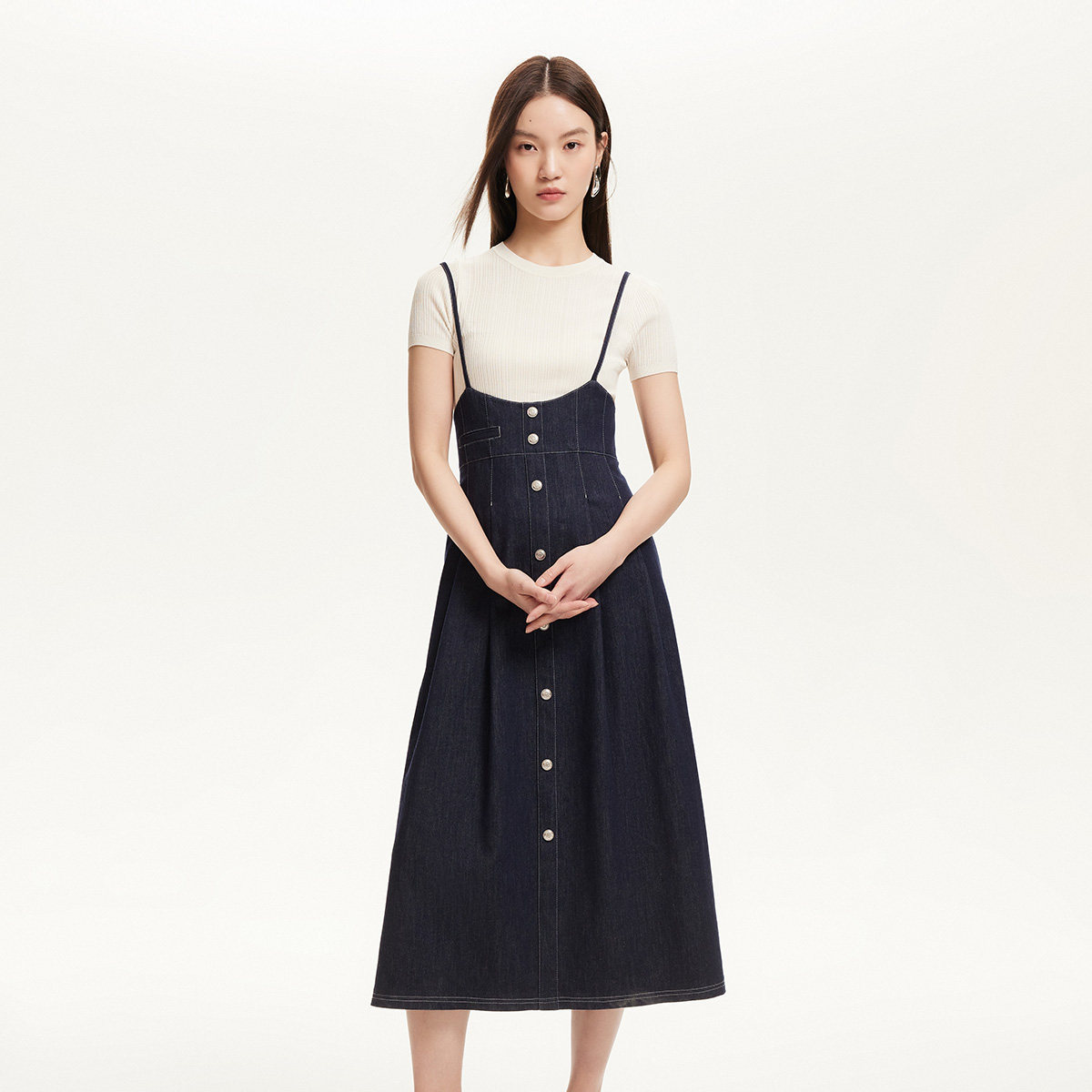 Vero Moda连衣裙女2025秋季新款含棉可调节吊带单排扣连衣裙百搭