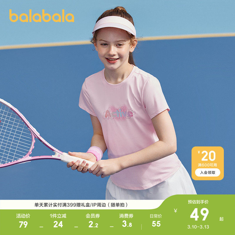 巴拉巴拉童装儿童短袖女童t恤夏装轻薄新款大童速干运动印花上衣