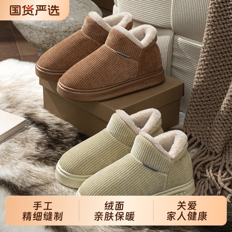 洋山公羊雪地靴棉拖鞋女新款冬季保暖家居加绒防滑情侣毛绒全包