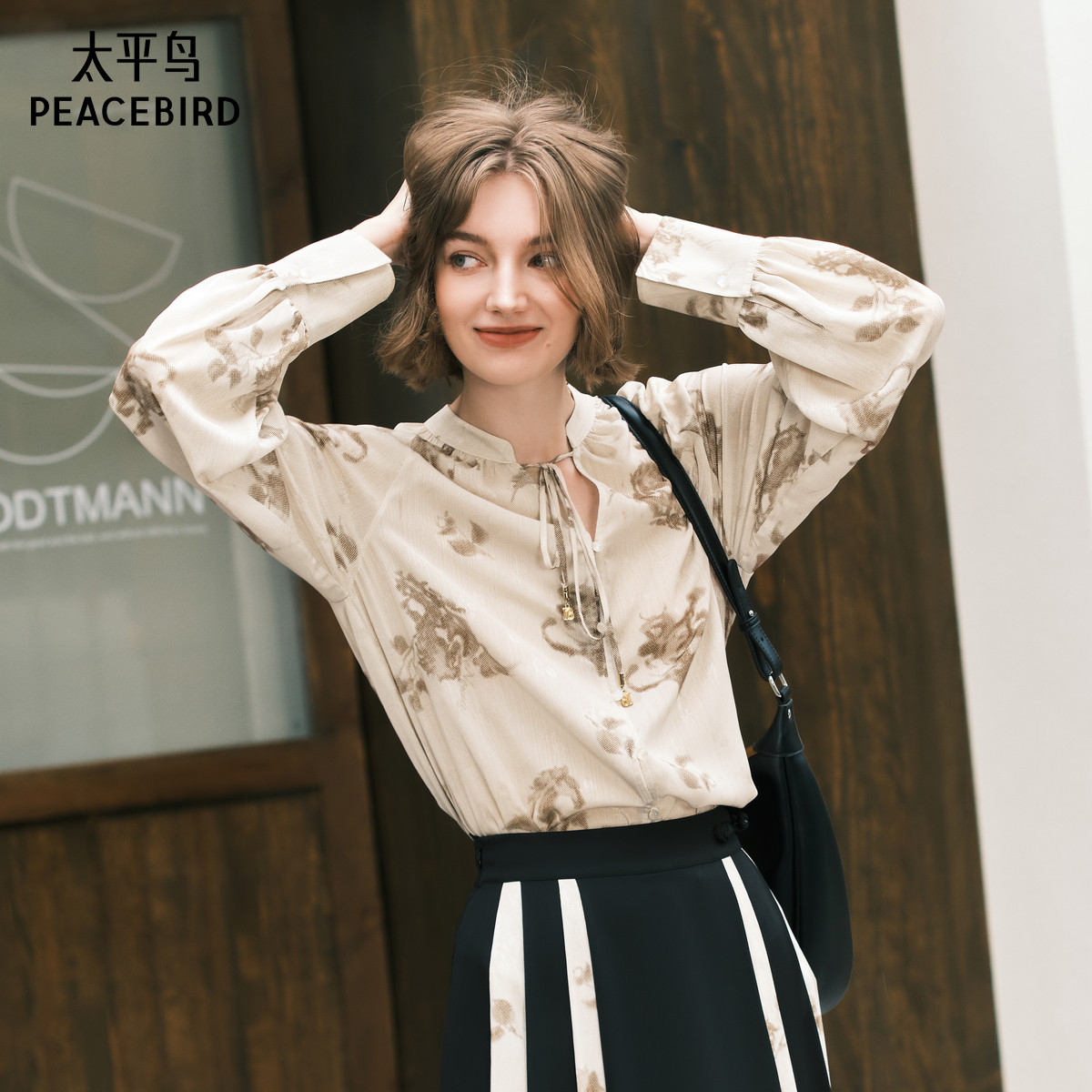 太平鸟女装年秋季款立领系带上衣A1CDE3245