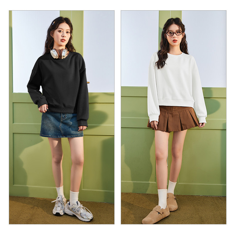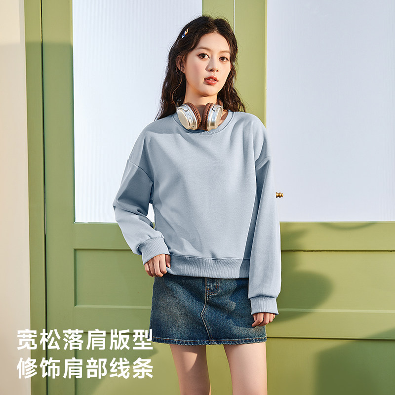 唐狮官方短款圆领卫衣女2026新款春秋款小个子韩版宽松休闲上衣VB