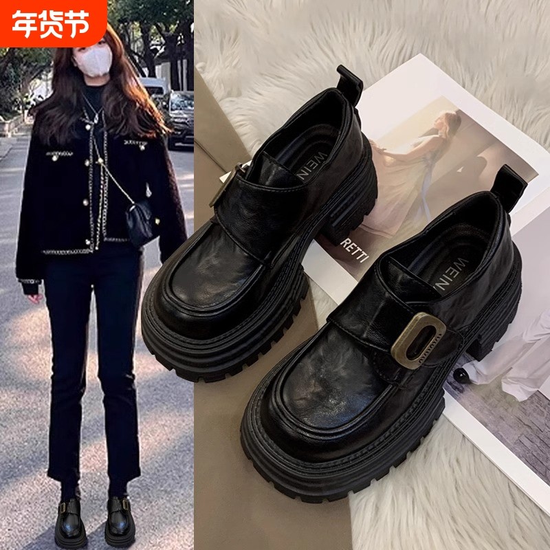 真皮厚底乐福鞋女2025春秋新款季松糕黑色百搭单鞋jk英伦风小皮鞋