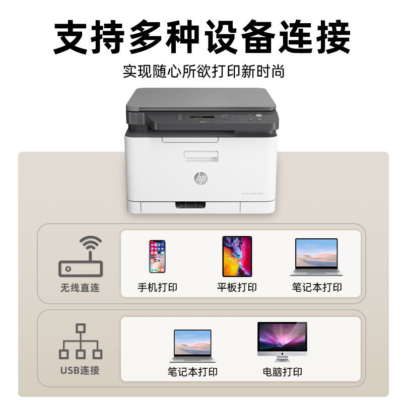 HP惠普178nw彩色激光多功能打印机无线A4扫描小型办公专用179fnw