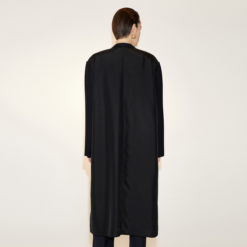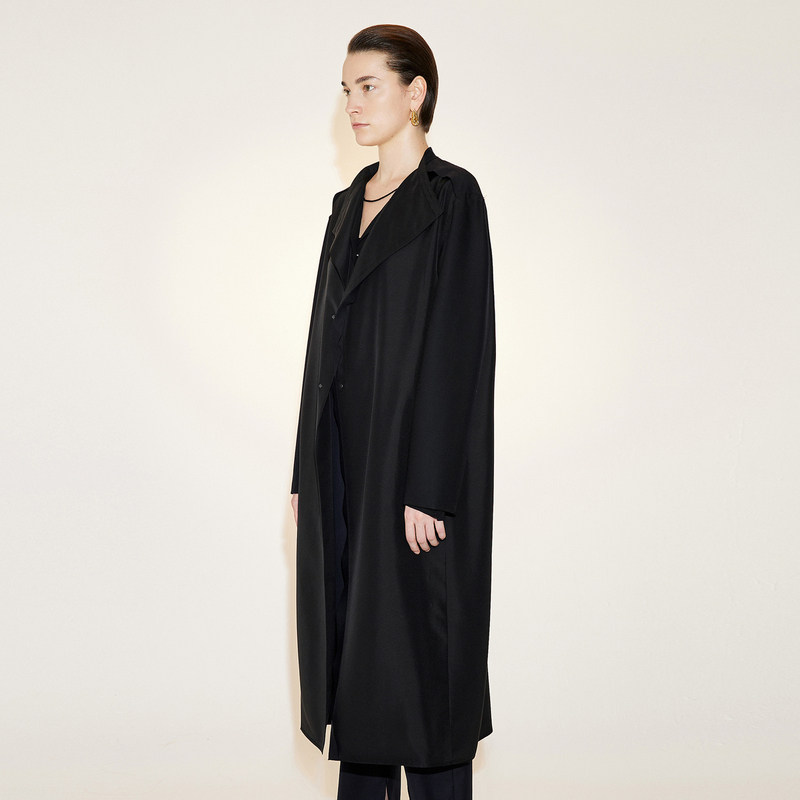 LESS春季桑蚕真丝风衣女简约气质优雅立领长款外套2N2913120