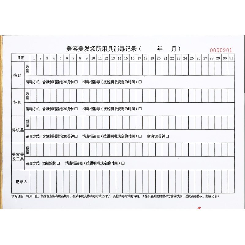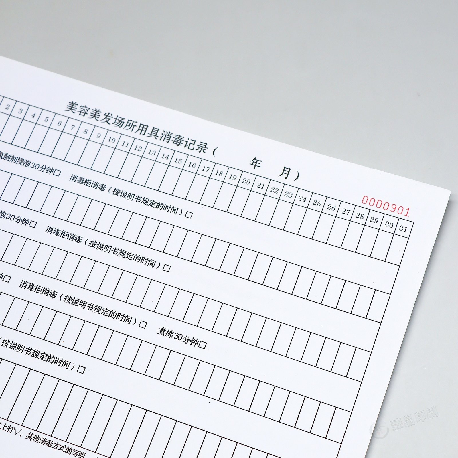 美容美发场所用具消毒记录表表定制表单理发店公共用品清洗登记本