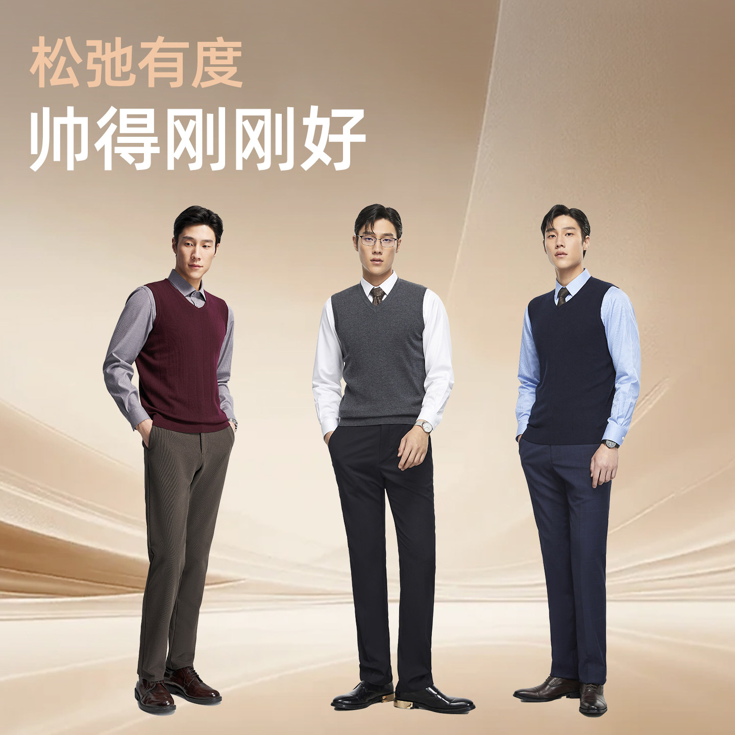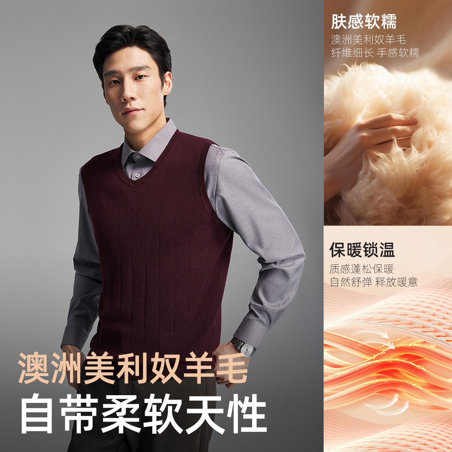 【可机洗】雅戈尔秋冬季男士V领毛衫背心商务保暖打底羊毛衫