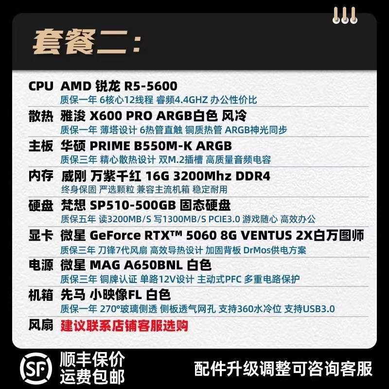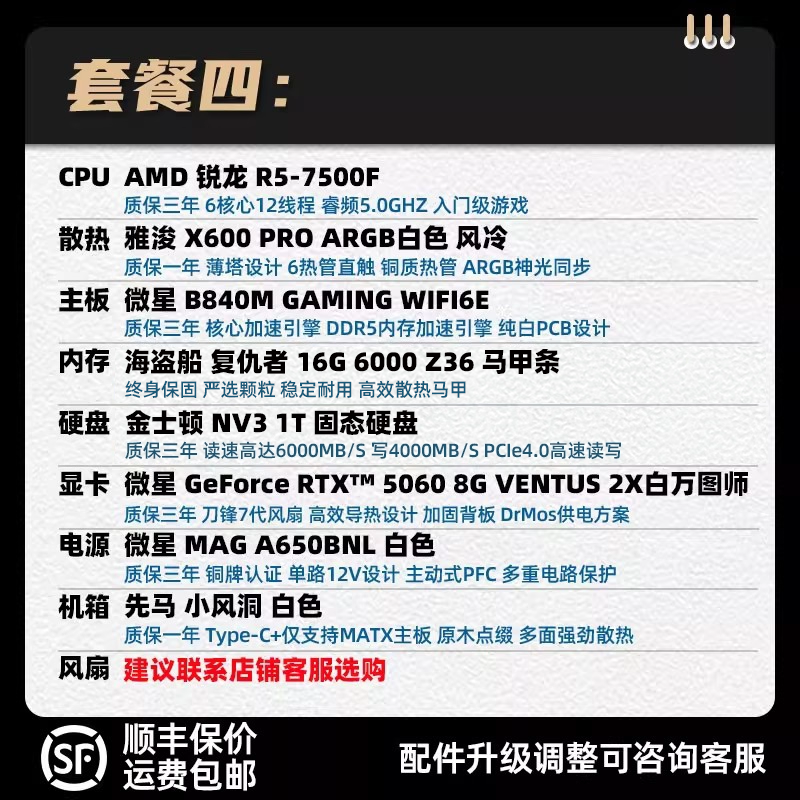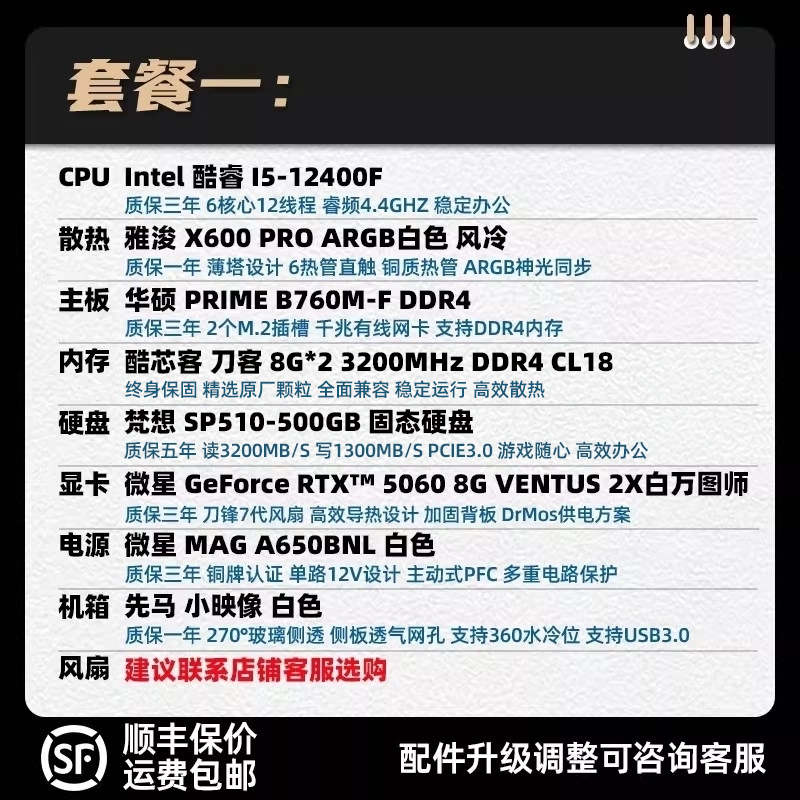 装机猿玩家店 微星RTX5060-8G白万图师/魔龙/12400F 电竞游戏主机