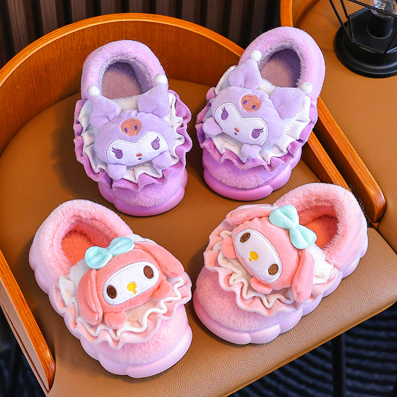 美乐蒂儿童棉拖鞋女童冬季2025新款室内家居家保暖毛毛拖鞋防滑