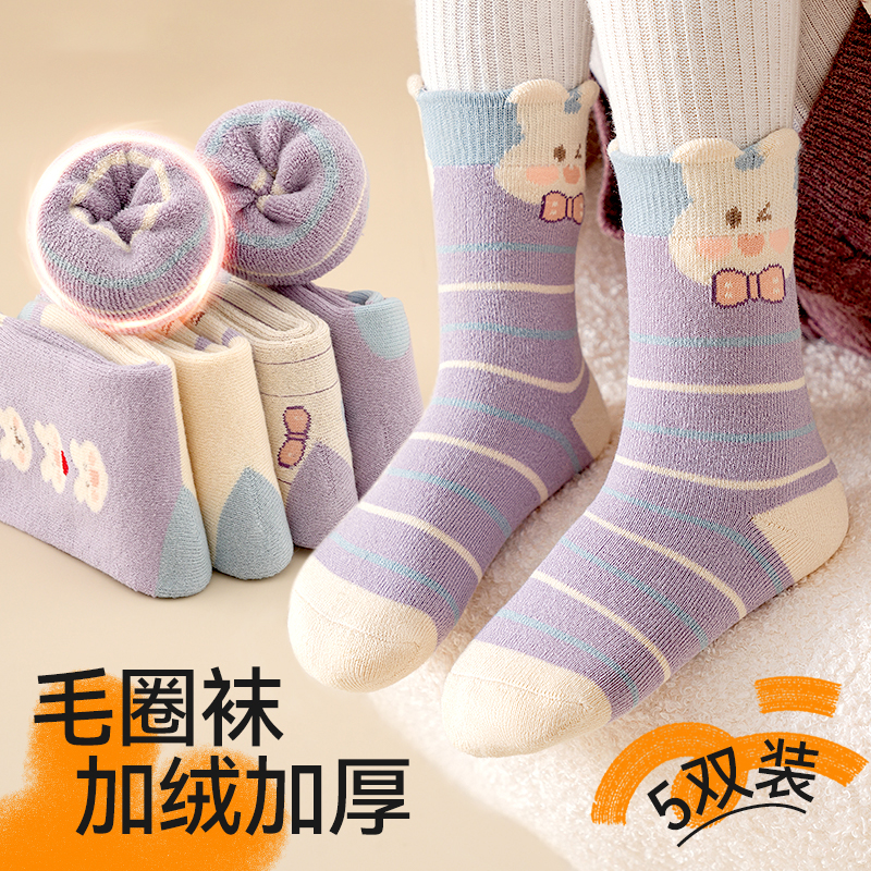 儿童袜子女童秋冬加绒加厚毛圈袜厚款冬季保暖女孩宝宝无骨中筒袜