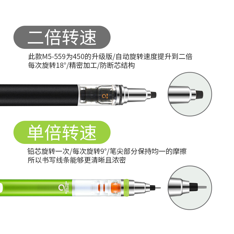 日本UNI三菱自动铅笔小学生写不断0.5三菱铅笔M5-559铅芯两倍转速自动旋转自动笔低重心不断铅芯大赏KuruToga