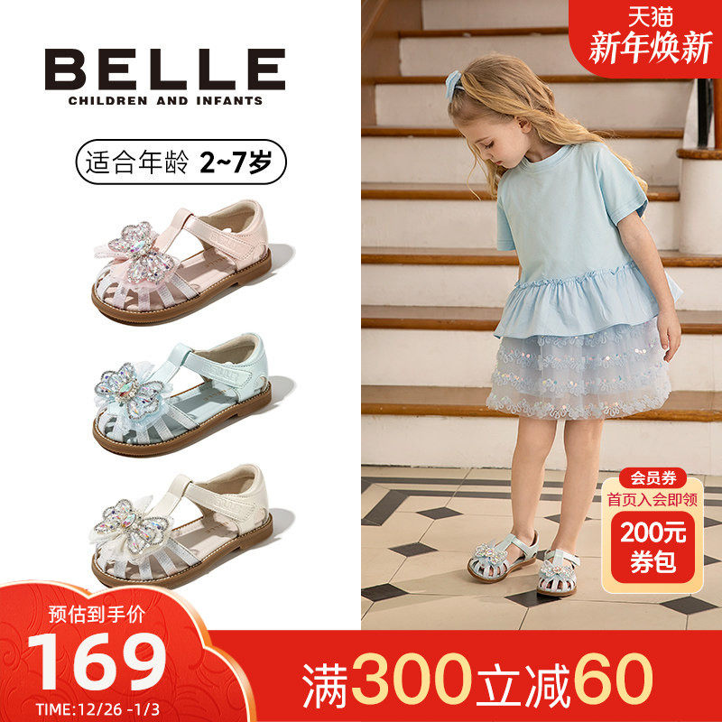 百丽童鞋女童凉鞋2025新款蝴蝶结儿童夏季女宝宝水晶公主凉鞋包头