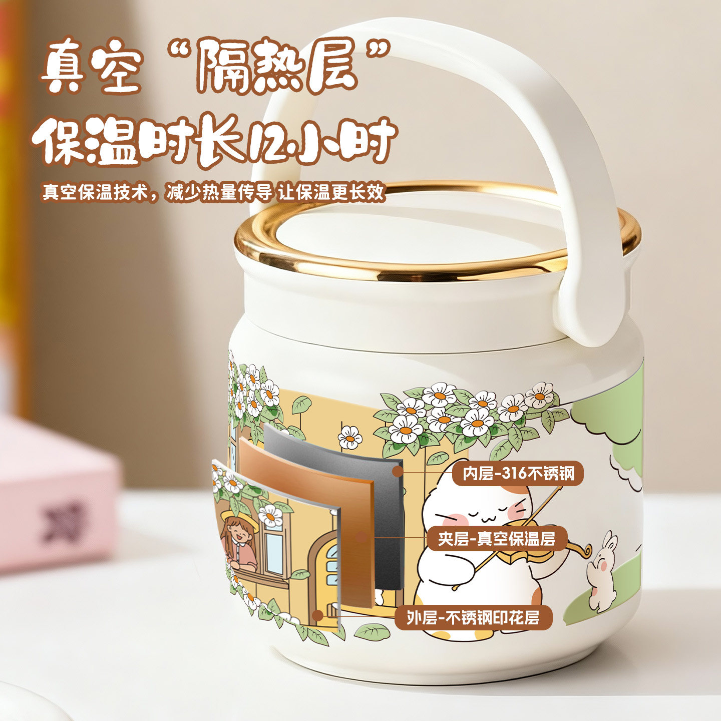 不锈钢超长保温24小时饭盒上班族2025新款保温提桶学生专用带饭桶