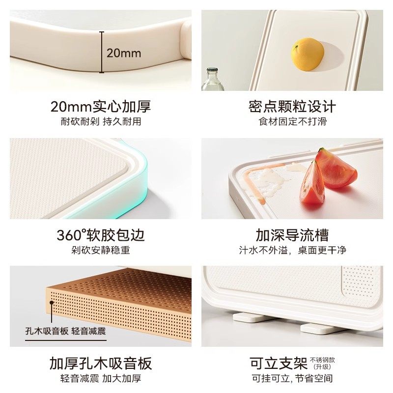 荣事达菜板防霉抗菌家用砧板切菜板案板厨房专用食品级不锈钢双面