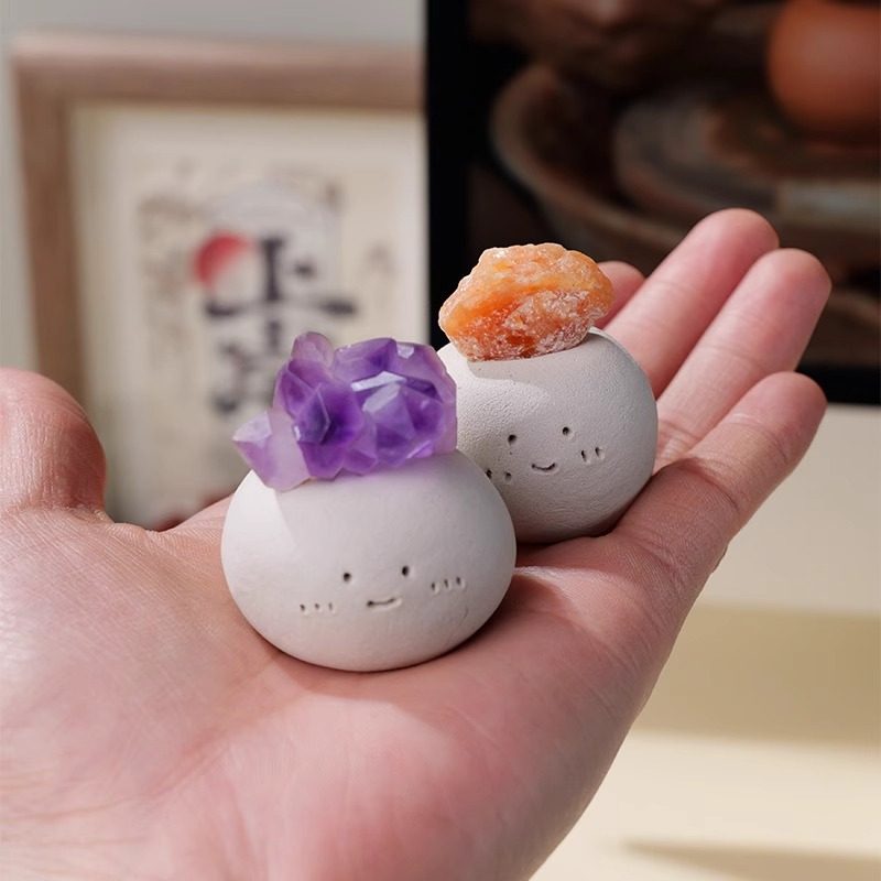 手工制作香港小豆丁水晶摆件水晶原石矿物晶体上班搭子礼物黑曜石