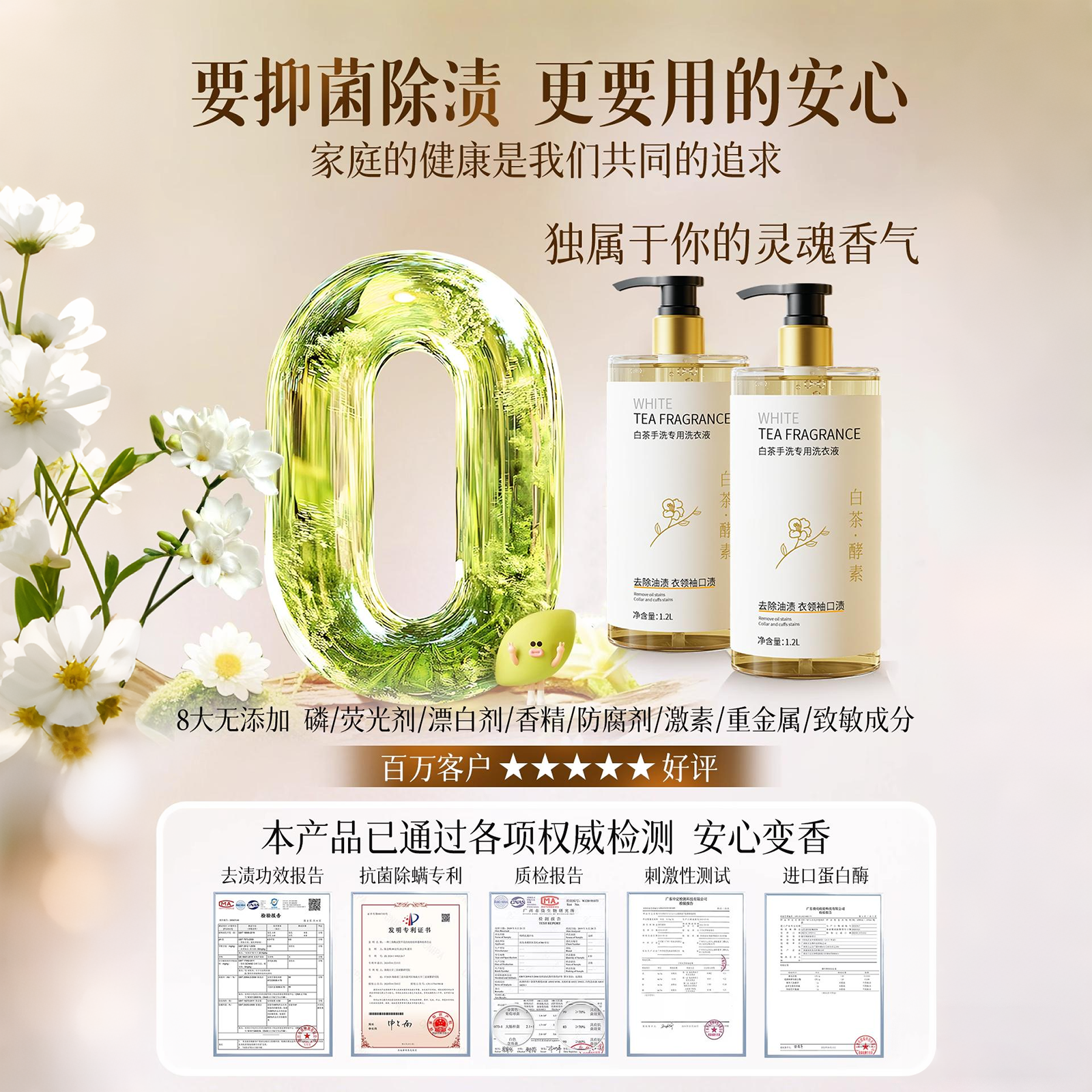 立白卫仕天然植物除菌洗衣液家用香氛持久留香除真菌除螨茶香正品