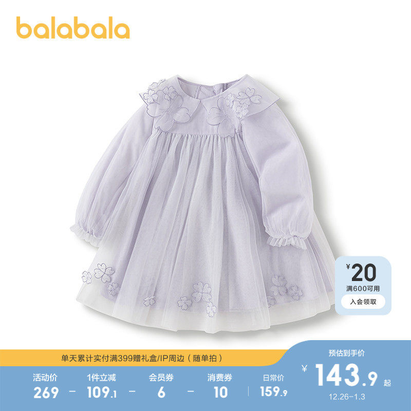 巴拉巴拉宝宝连衣裙蓬蓬网纱裙A字裙女童装2025秋季新款裙子儿童