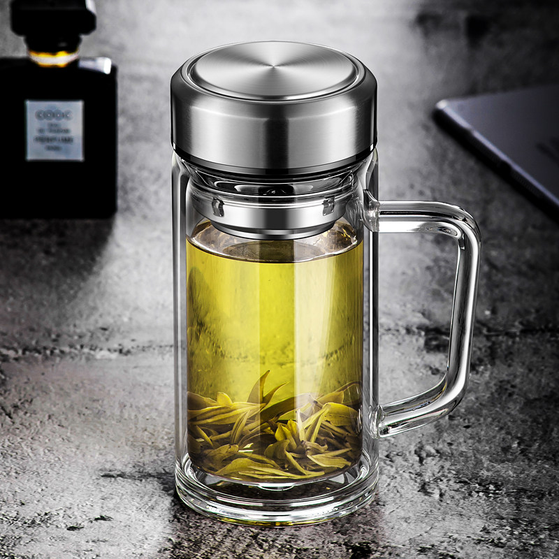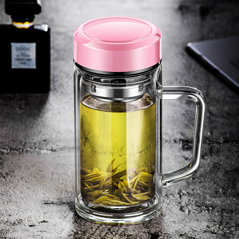 2025新款双层玻璃杯茶水分离办公泡茶男士把手家用杯子大容量便携