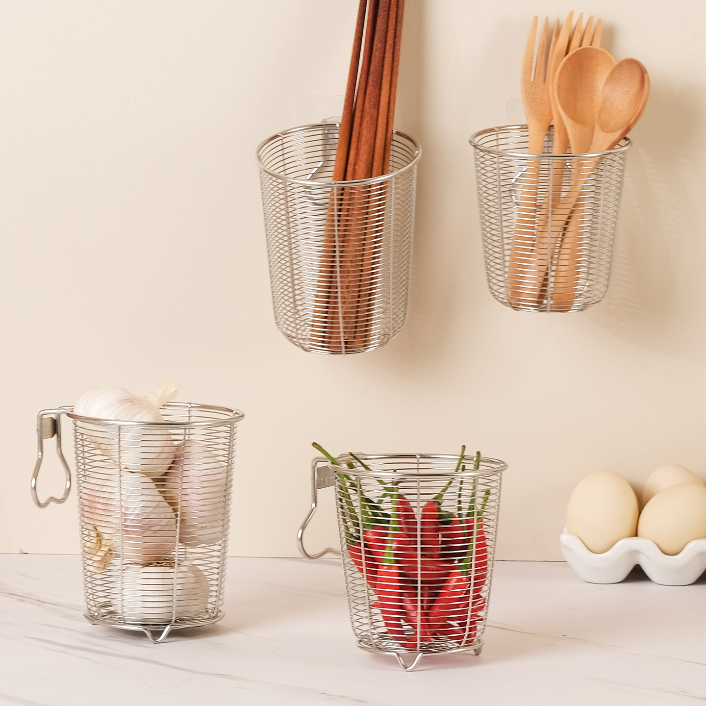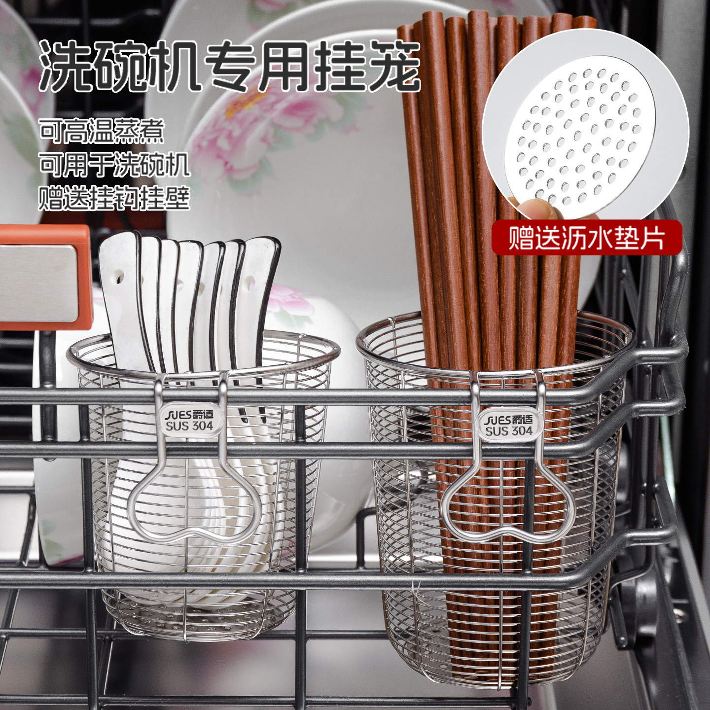 316L不锈钢筷子筒收纳盒洗碗机悬挂筷子篮壁挂式筷子桶2025年新款