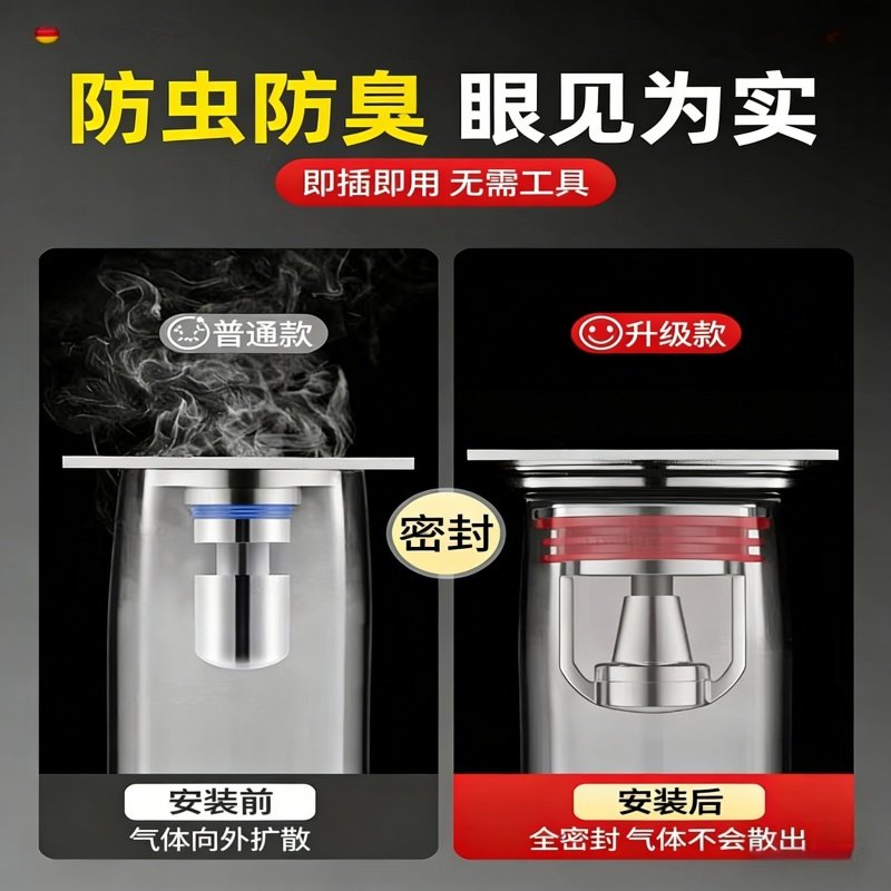 卫生间地漏防臭器弹跳芯密封盖下水道防返臭虫神器通用按压脚踩式