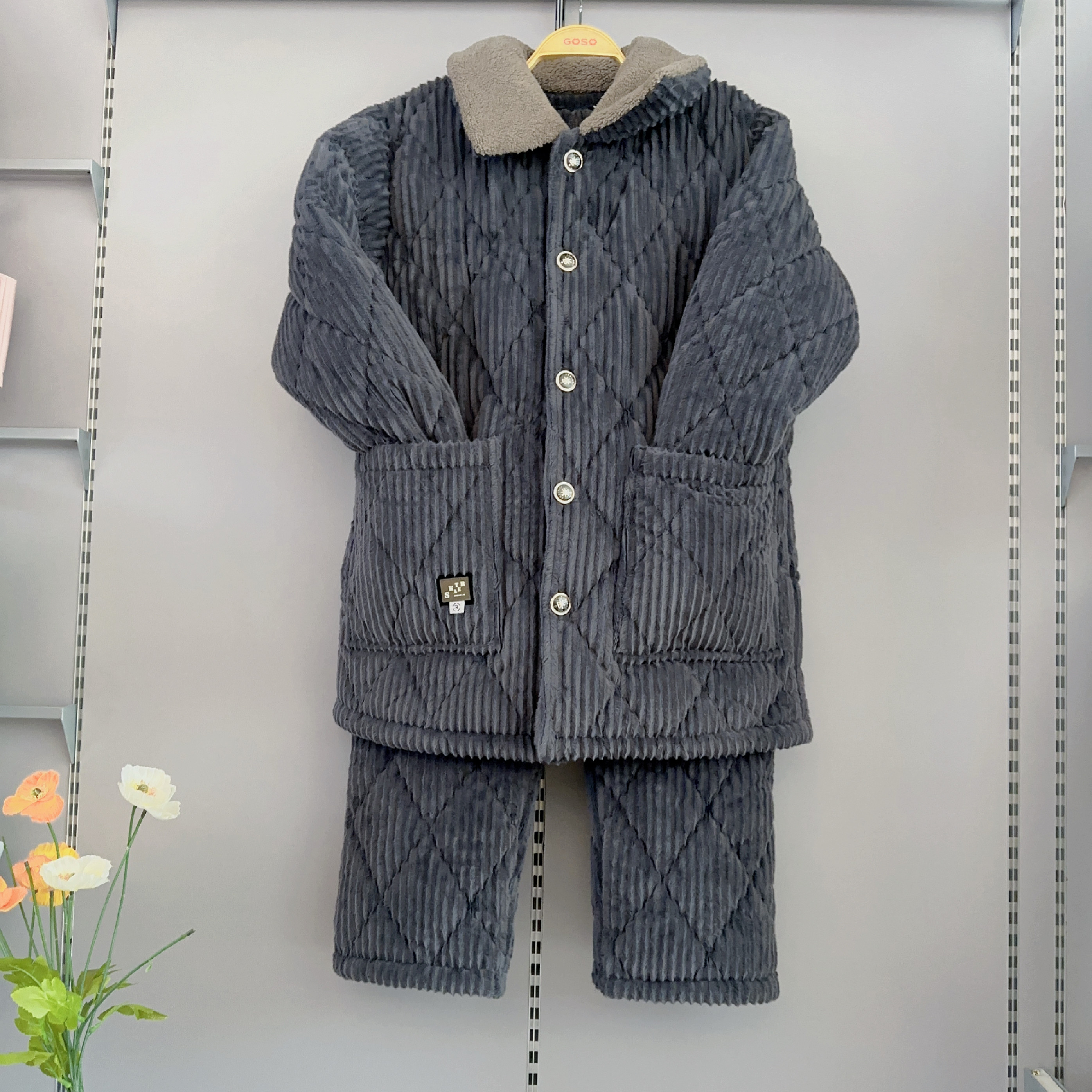 男士睡衣冬季珊瑚绒三层夹棉加厚加绒男款青少年2025年新款家居服