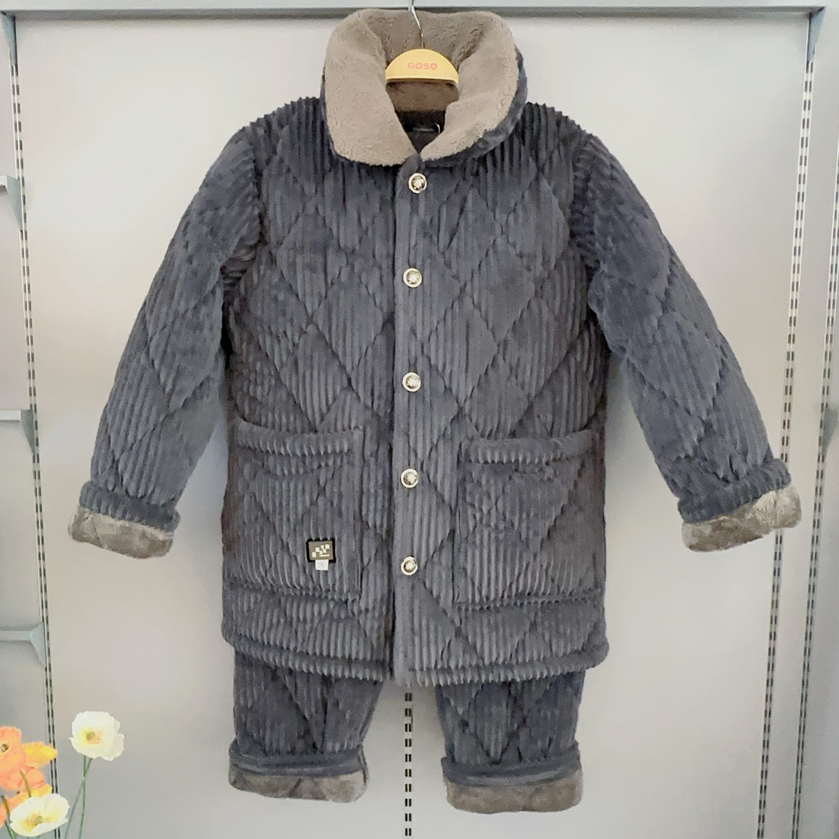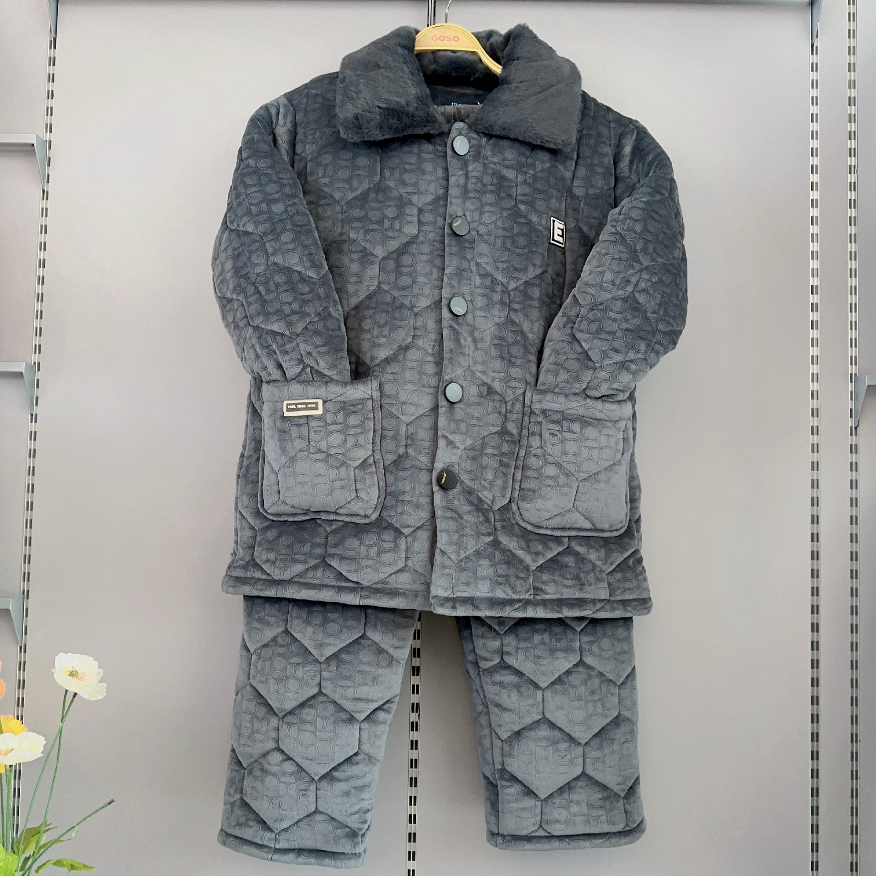 香蜜闺秀25424061男款三层夹棉睡衣绒毛蓄温防风保暖套装家居服