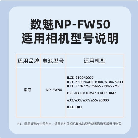 数魅【征途】NP-FW50电池适用sony索尼a6400a6000a7r2m2s2a7一代