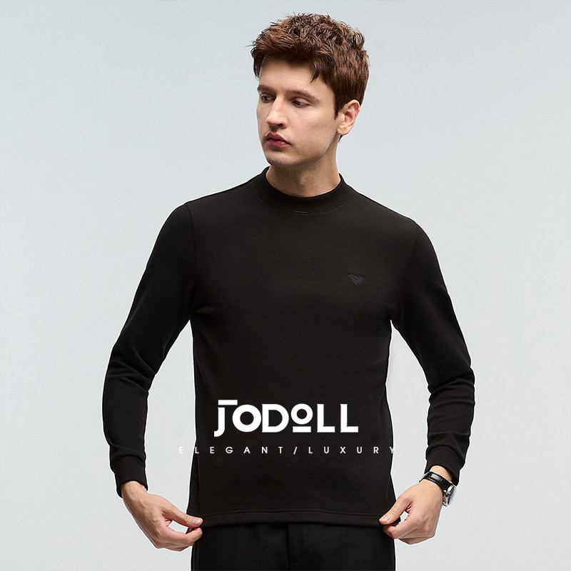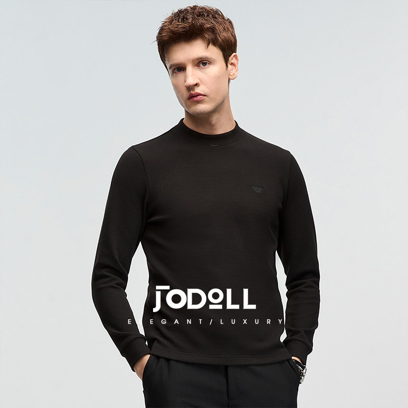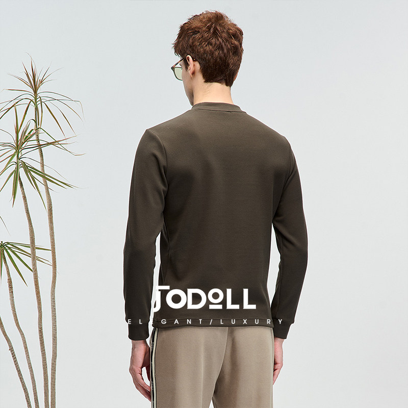 乔顿男柔软舒适四面弹长袖上衣纯色休闲百搭磨毛刺绣圆领长袖T恤