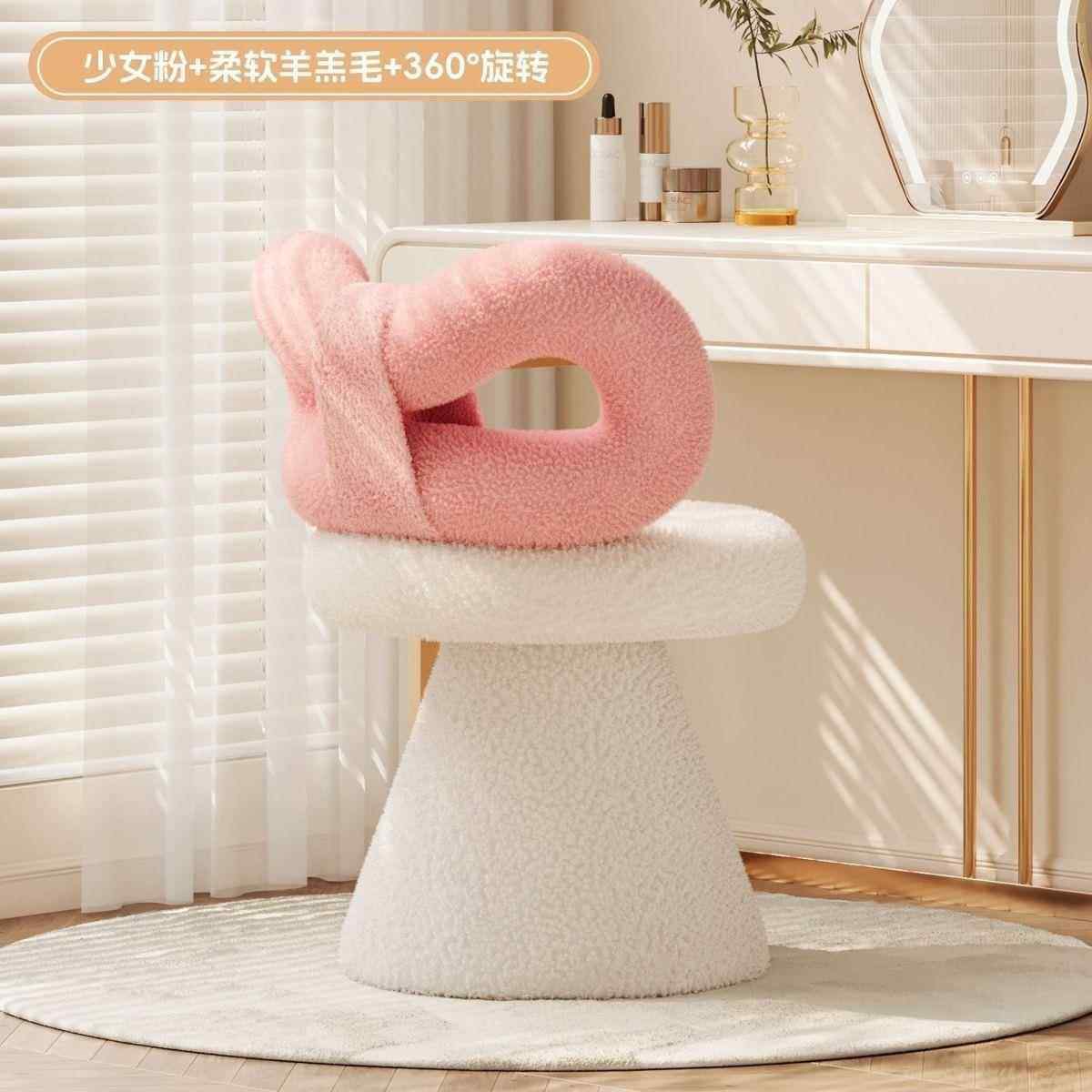 奶油家用法式化妆梳妆台梳妆凳子椅子网红简约旋转卧室美甲蝴蝶结