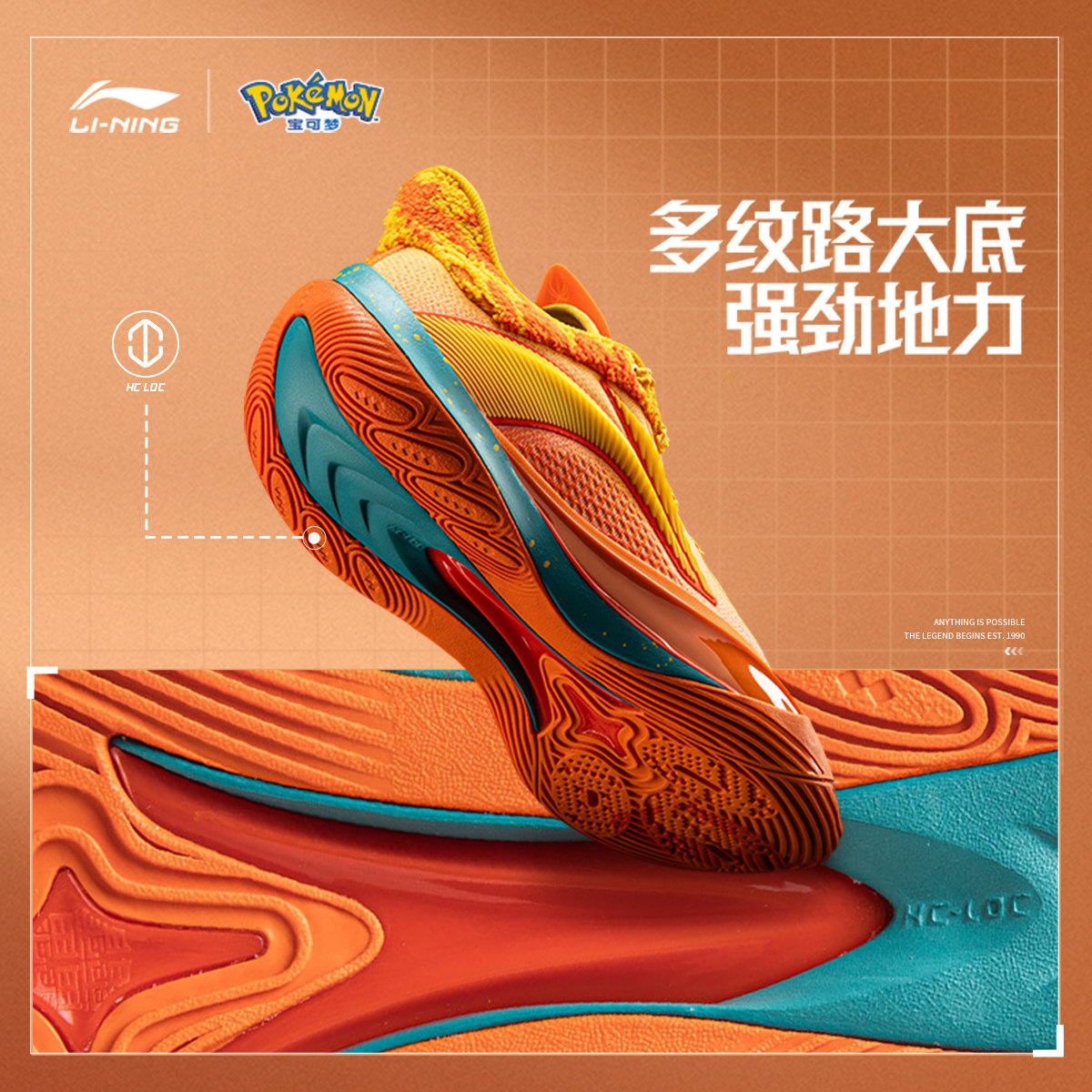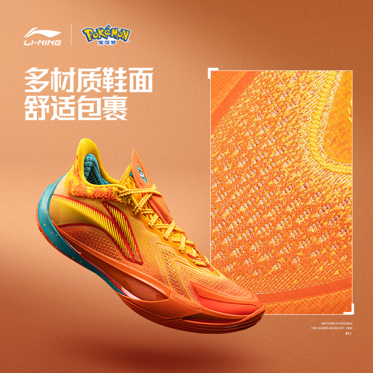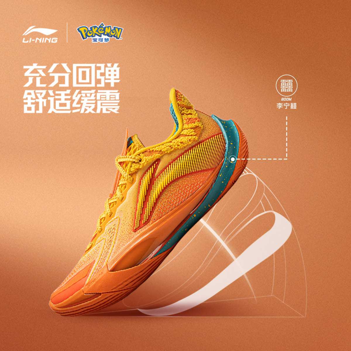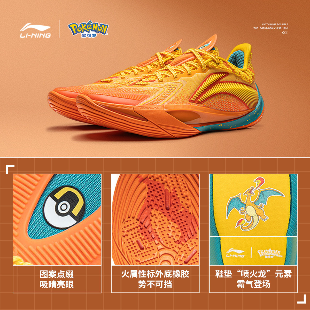 李宁宝可梦联名系列音速13v2喷火龙 | 篮球鞋男轻量高回弹运动鞋